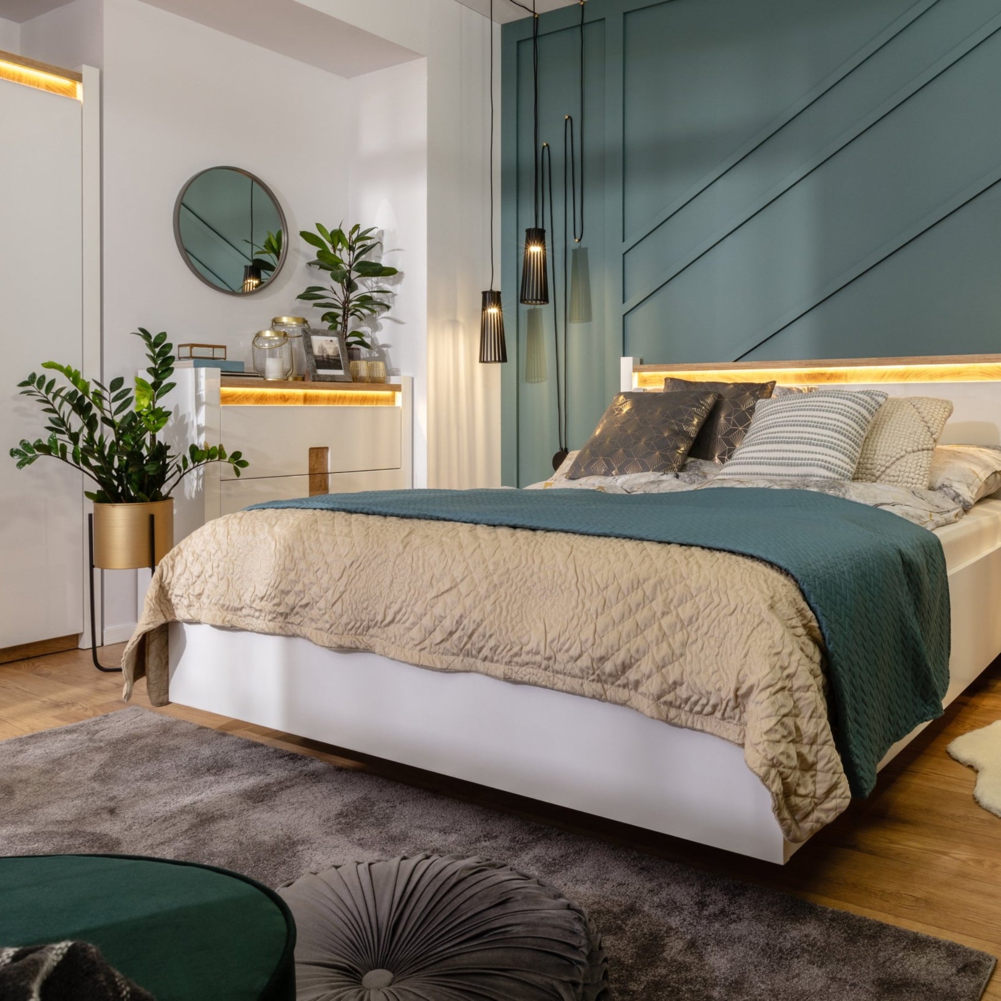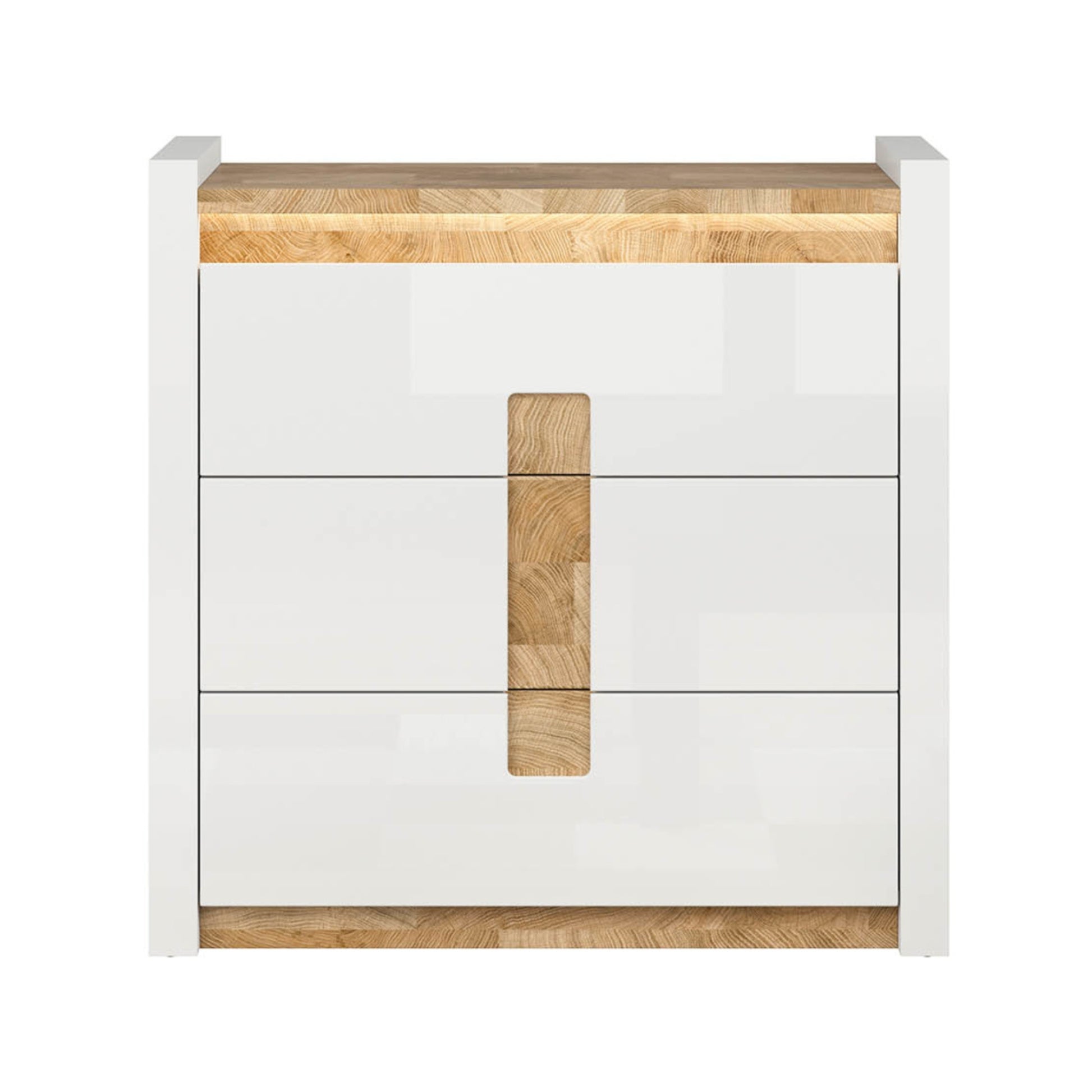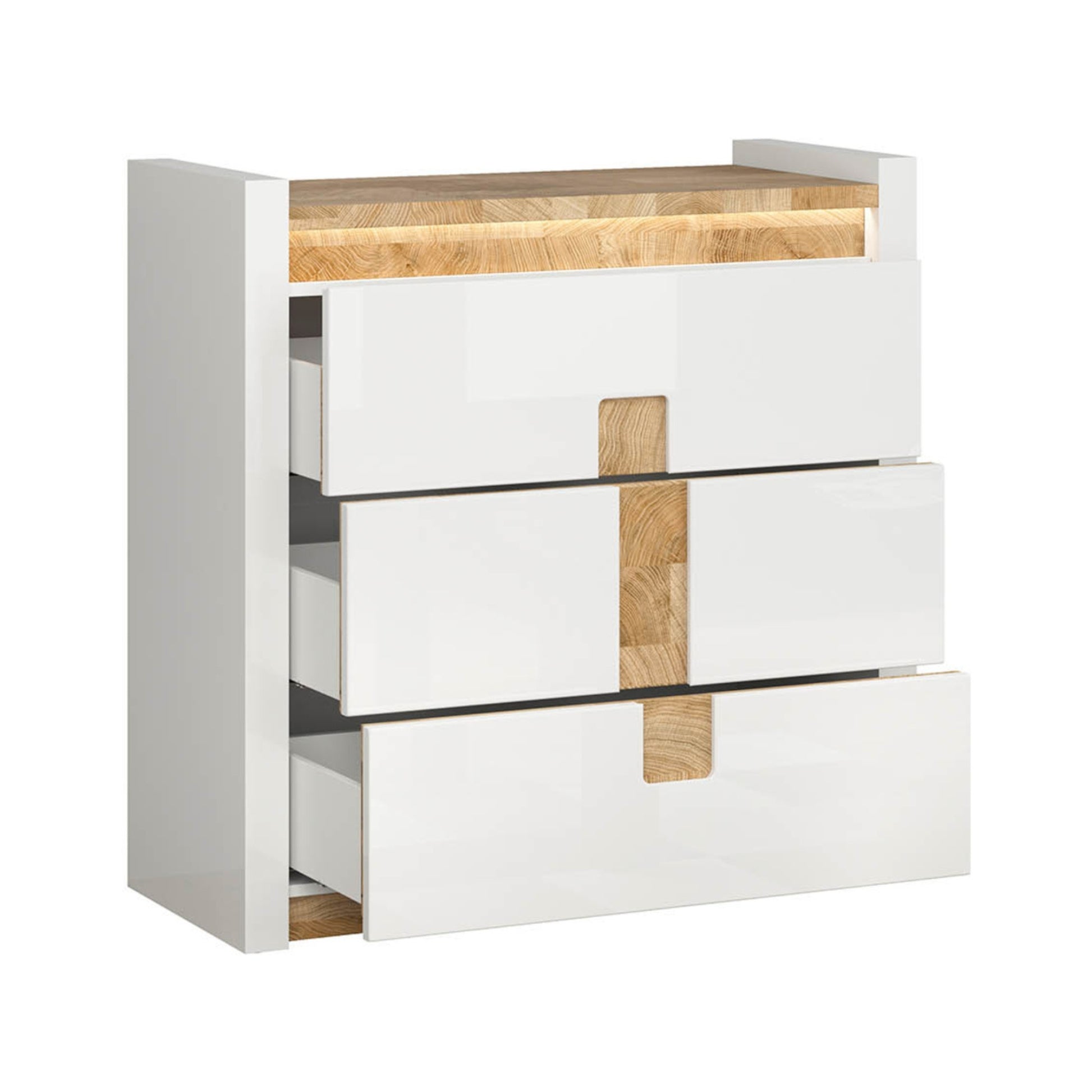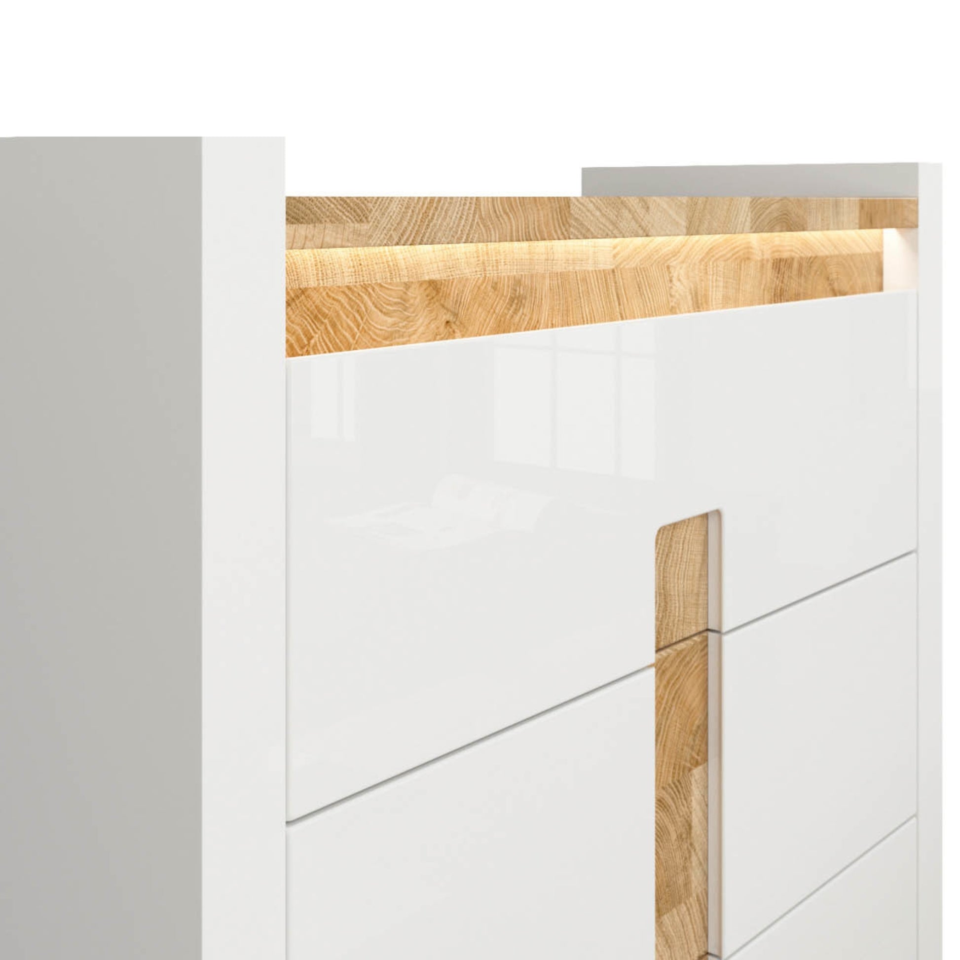 Modern yet cozy furniture design? The Alameda collection is everything you need now based on a simple structure and original details. A delightful combination of white high gloss fronts with Westminster oak top, plinths and decorative accents is ready to highlight every modern living space. What distinguishes this series is the LED lighting installed under the top, emphasizing the contemporary design of the furniture and creating a warm ambience and soft-closing hinges and runners, which makes everyday use of the whole collection a true pleasure. Alameda has many pieces to offer - combine them and create the most convenient space for you.