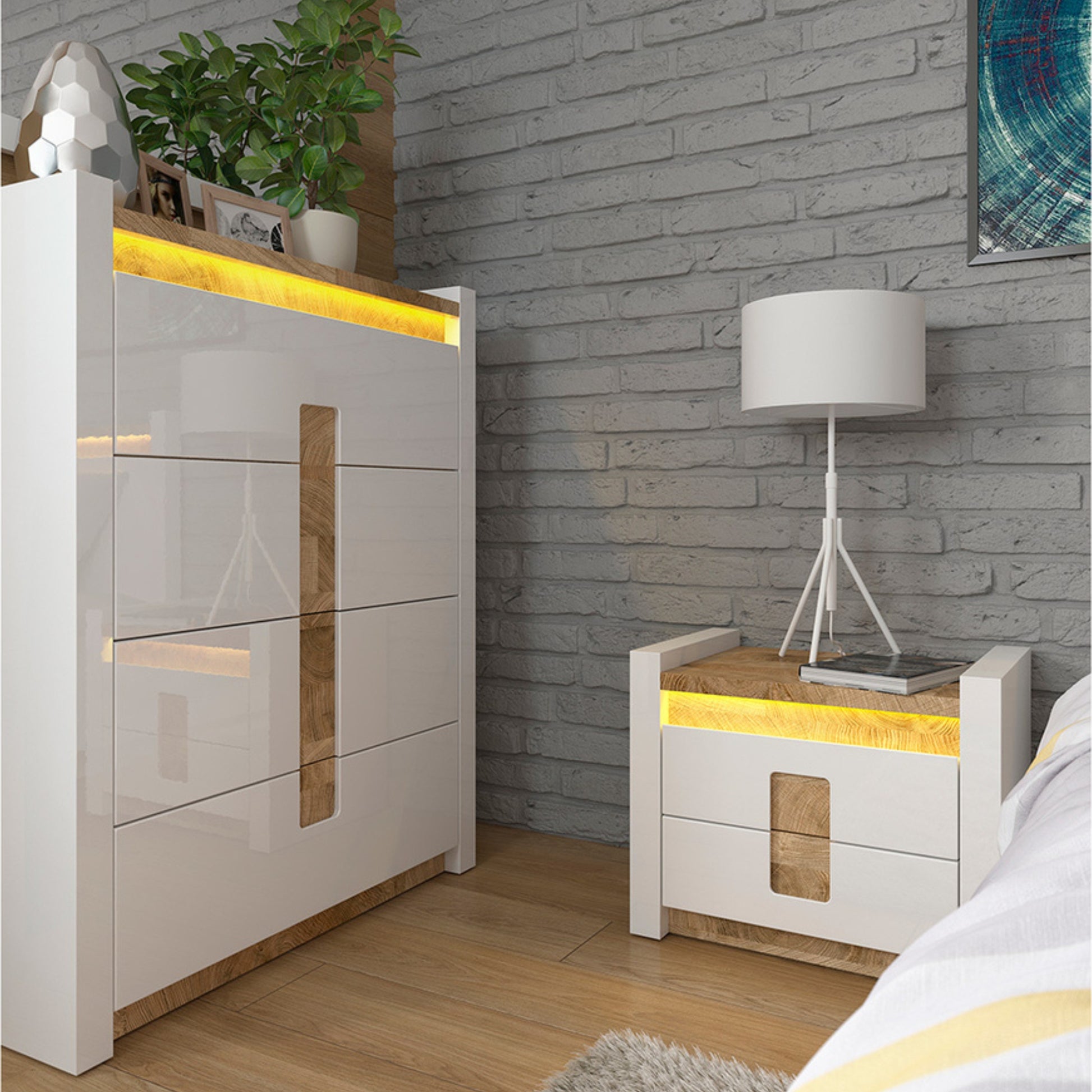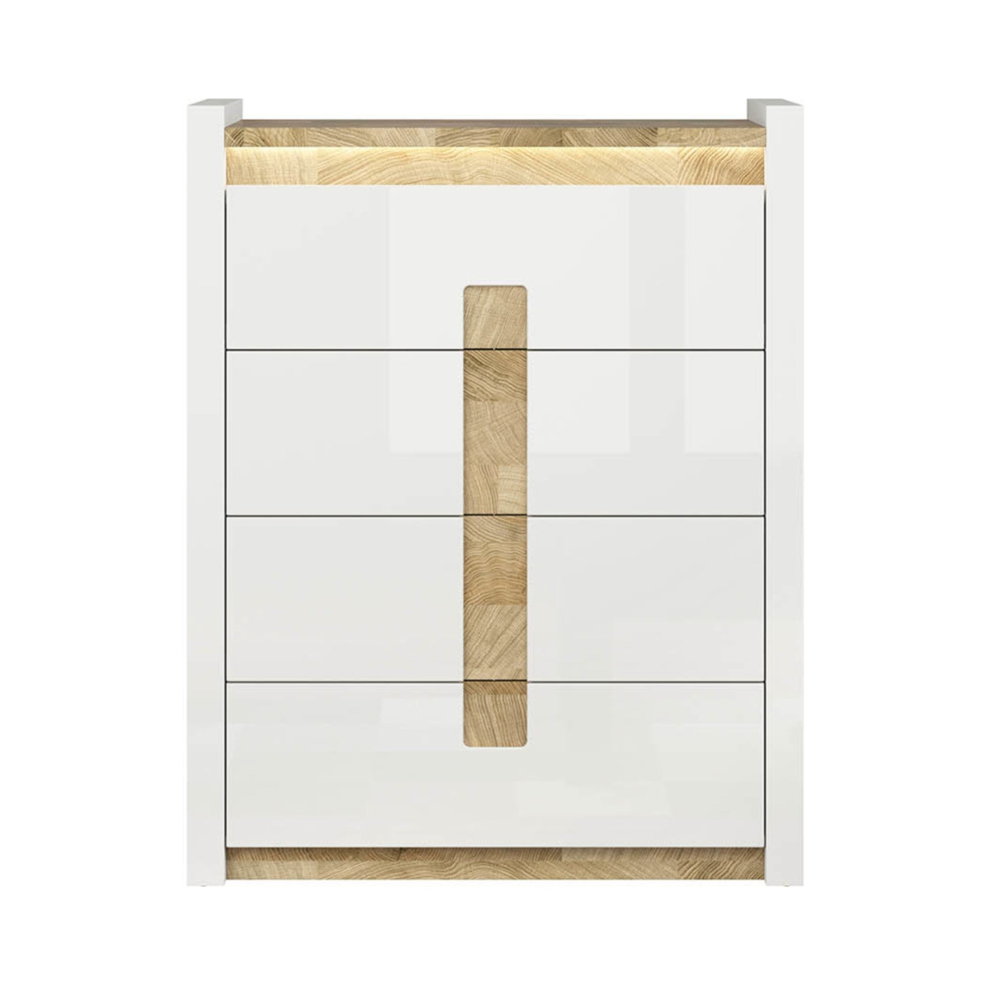 Modern yet cozy furniture design? The Alameda collection is everything you need now based on a simple structure and original details. A delightful combination of white high gloss fronts with Westminster oak top, plinths and decorative accents is ready to highlight every modern living space. What distinguishes this series is the LED lighting installed under the top, emphasizing the contemporary design of the furniture and creating a warm ambience and soft-closing hinges and runners, which makes everyday use of the whole collection a true pleasure. Alameda has many pieces to offer - combine them and create the most convenient space for you.