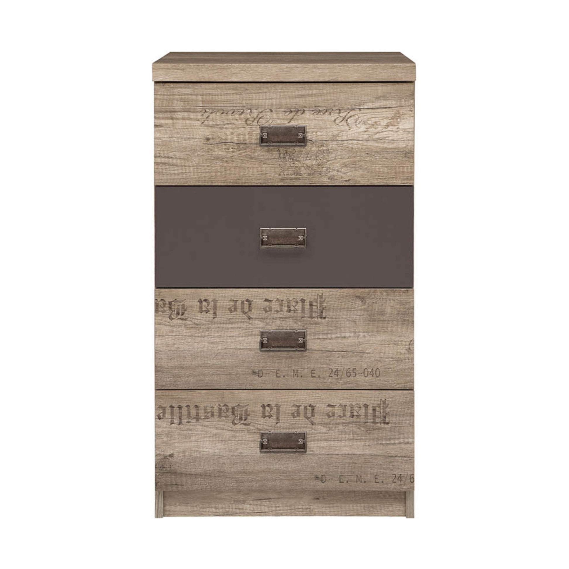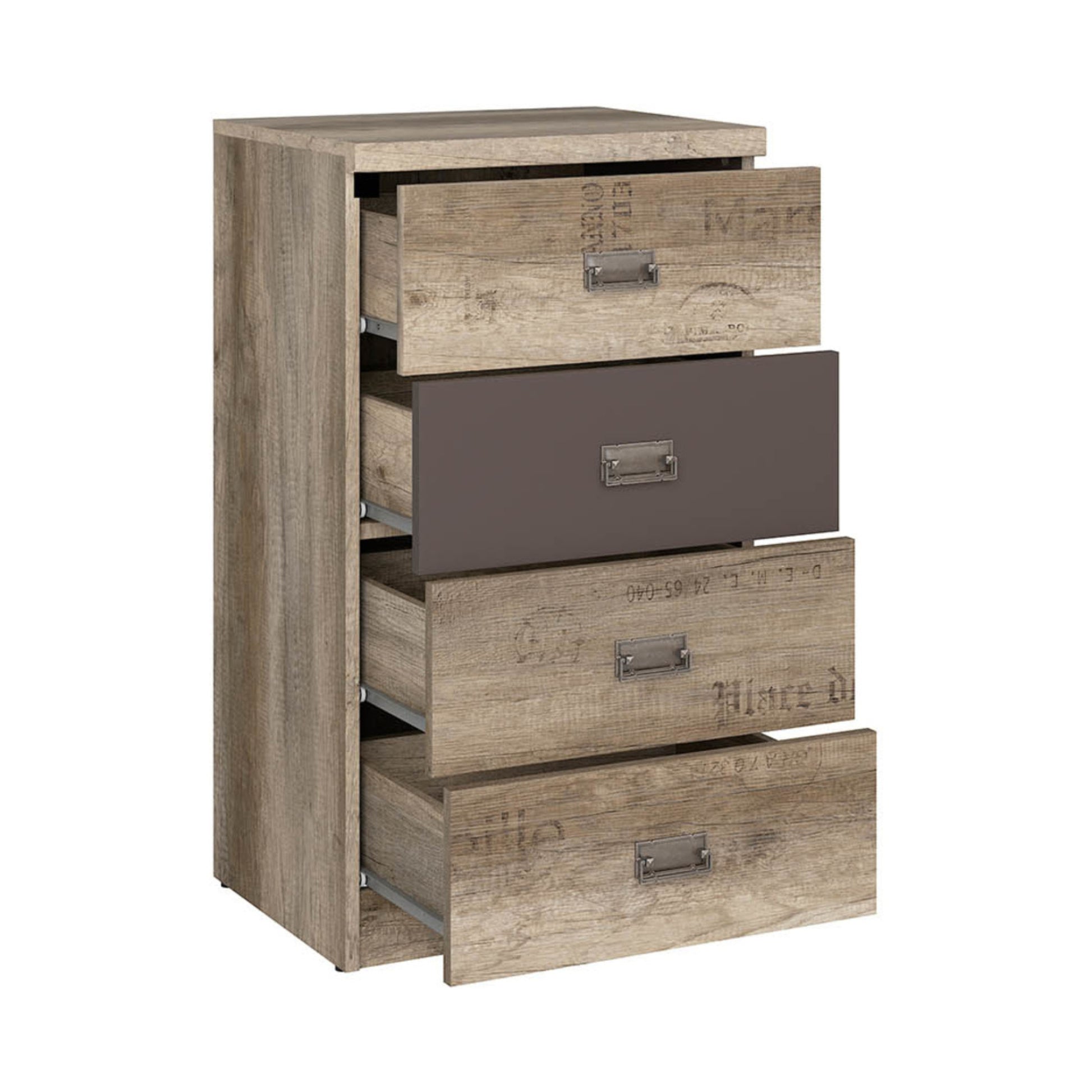 The Malcolm collection is a smart variation of youth furniture. It combines a modern approach to design and traditional colours. All pieces are made in a soft hue of canyon monument oak blended with a gray wolfram accent. Letter prints and large handles in antique nickel colour outline the collection's youthful character. Malcolm's pieces can be combined in any way to perfectly match the room's requirements and the child's individual needs.