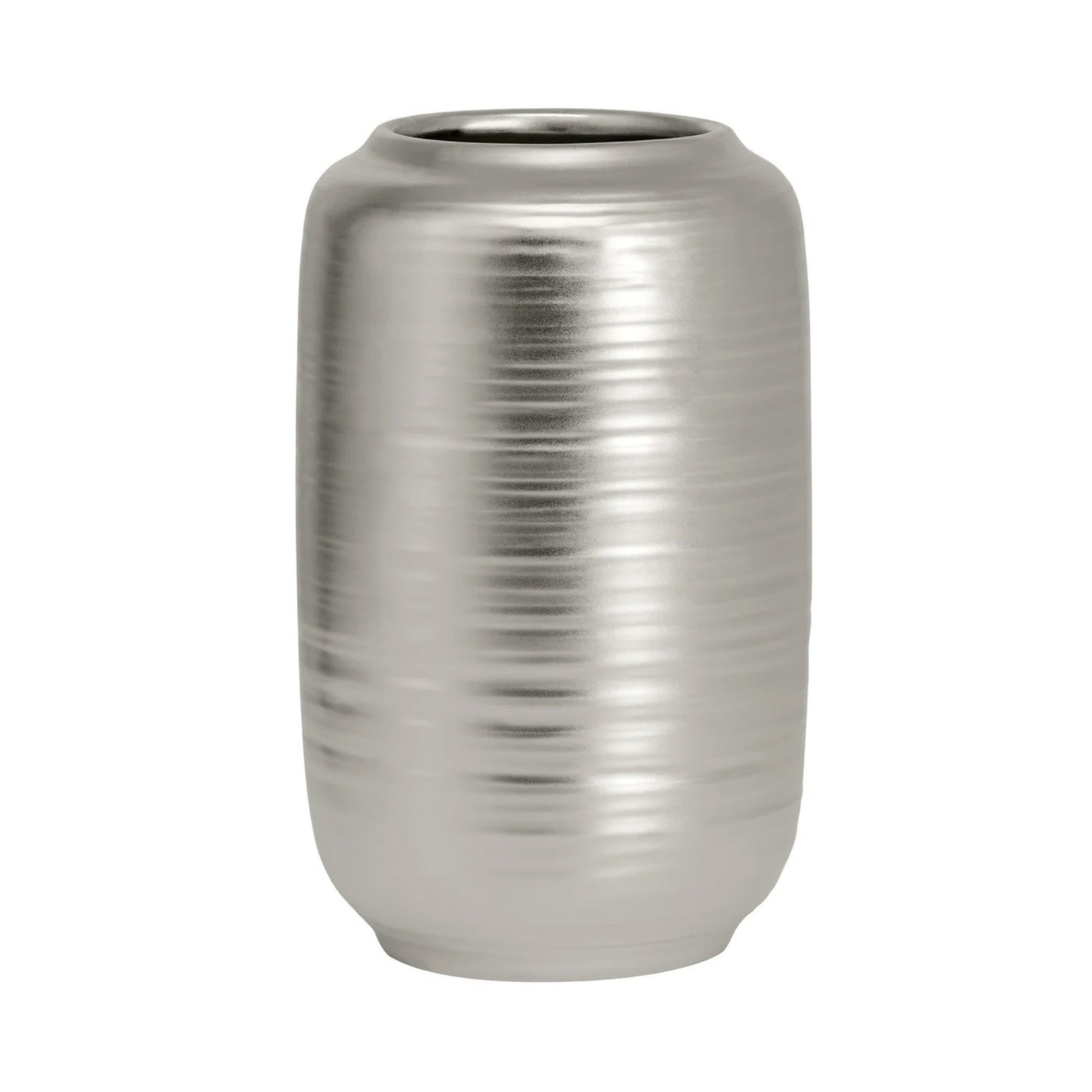 Add a touch of elegance and timeless beauty to your living room or dining room with the Adina matte silver finish ceramic vase. Its sleek and sophisticated design makes it a perfect centrepiece for special events or everyday decor. Whether used as a bouquet vase or displayed on a console table, this vase effortlessly combines modern style with a touch of refined charm, elevating the ambiance of any space.