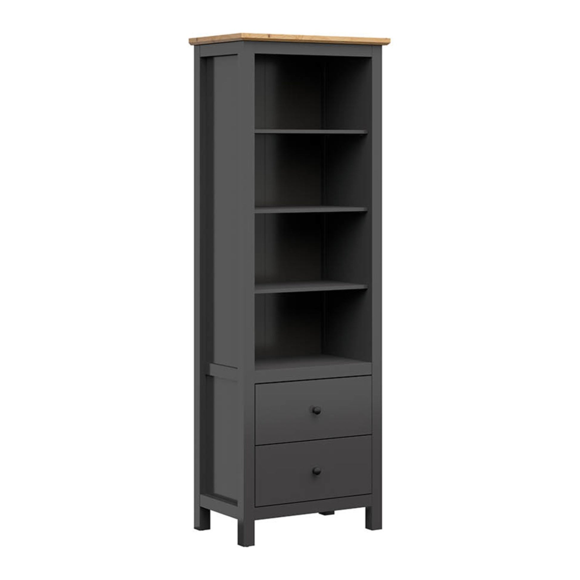 The bookcase Hesen is a beautiful piece of furniture that fits various living spaces. The versatile approach allows storing and displaying at the same time. Four open shelves are perfect for books, trinkets or porcelain. Bottom drawers will hold anything you want to hide from eyesight, like table linens or magazines. Additionally, full extension slides make using this piece a true pleasure.
