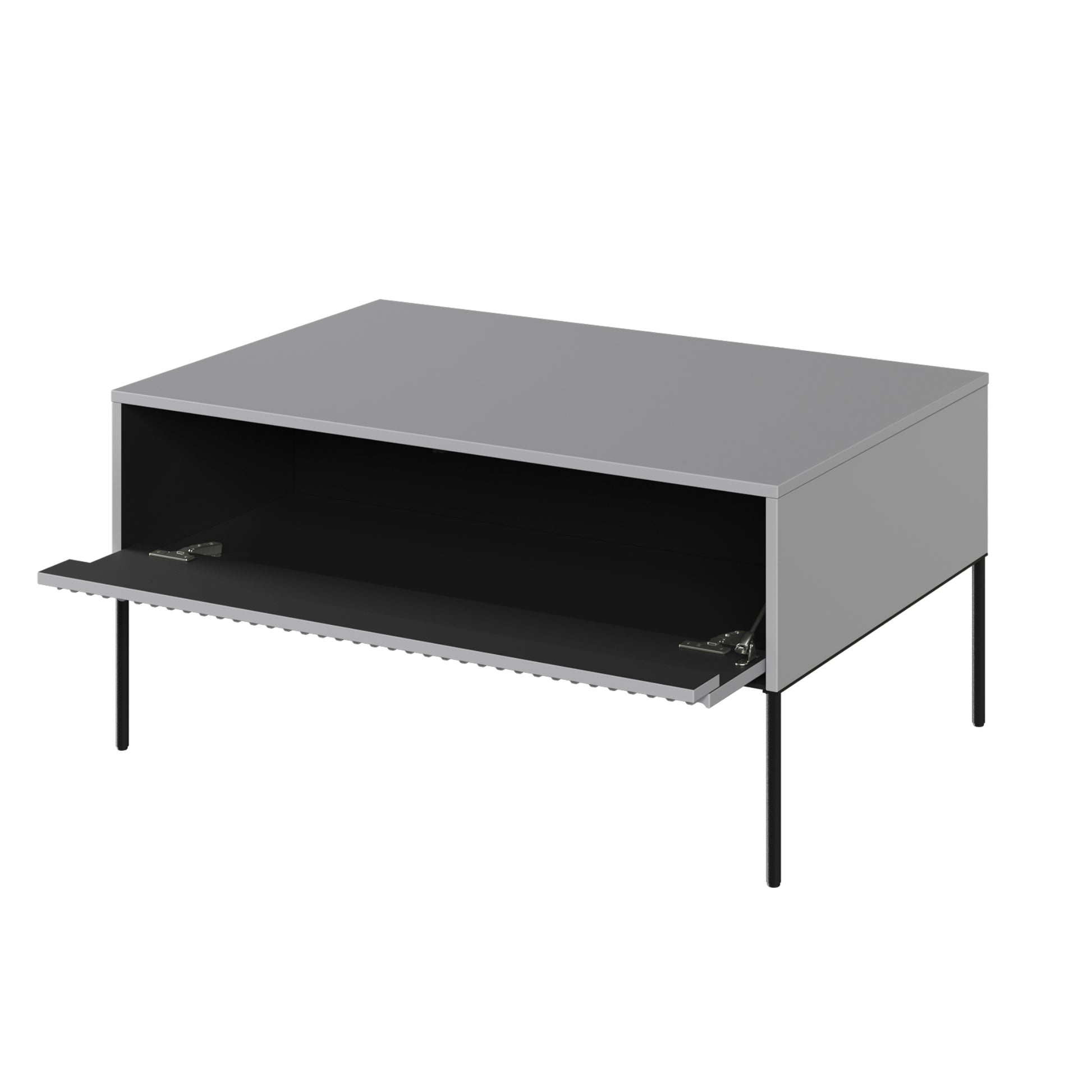 The Trend Coffee Table is a perfect blend of unique design and functionality. The elegant slat fluting on the front gives it a distinct character. Made using high-quality materials, this piece is durable and long-lasting. The enclosed compartment offers additional storage space, while the wide top can hold anything you need while hosting a gathering or watching TV. It is a practical solution that adds style to any interior. Moreover, the push-to-open mechanism installed in the doors makes it easy to use.