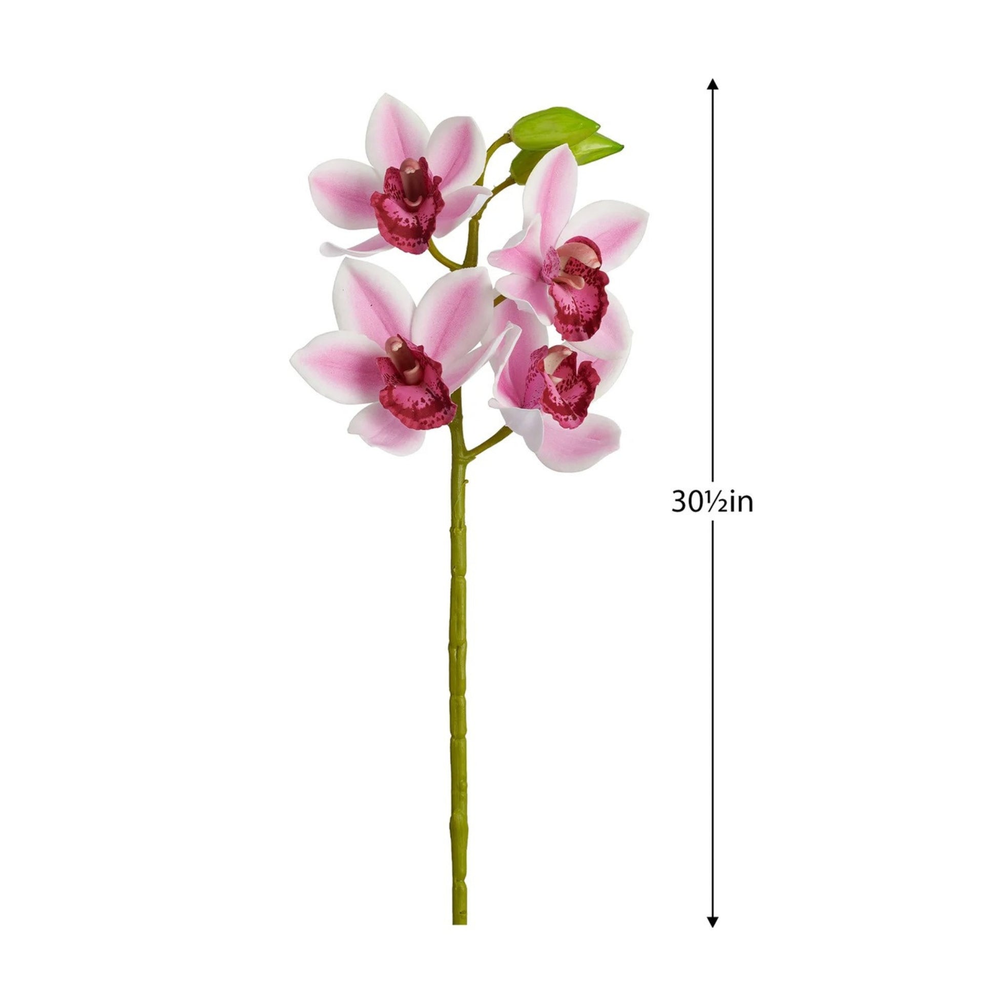 This handcrafted life-like faux cymbidium orchid stem is meticulously detailed to decorate the home or store display in a realistic reproduction of nature's finest.
