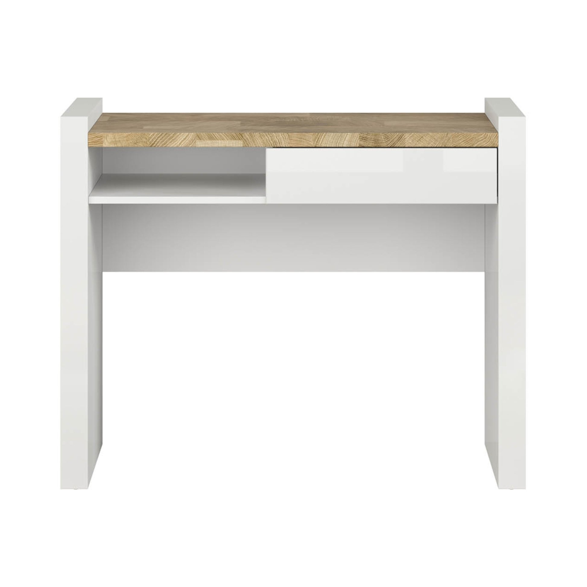 The modern yet straightforward Alameda desk comes with one ample drawer and an open shelf for work or study essentials. The compact size will be perfect for small spaces.