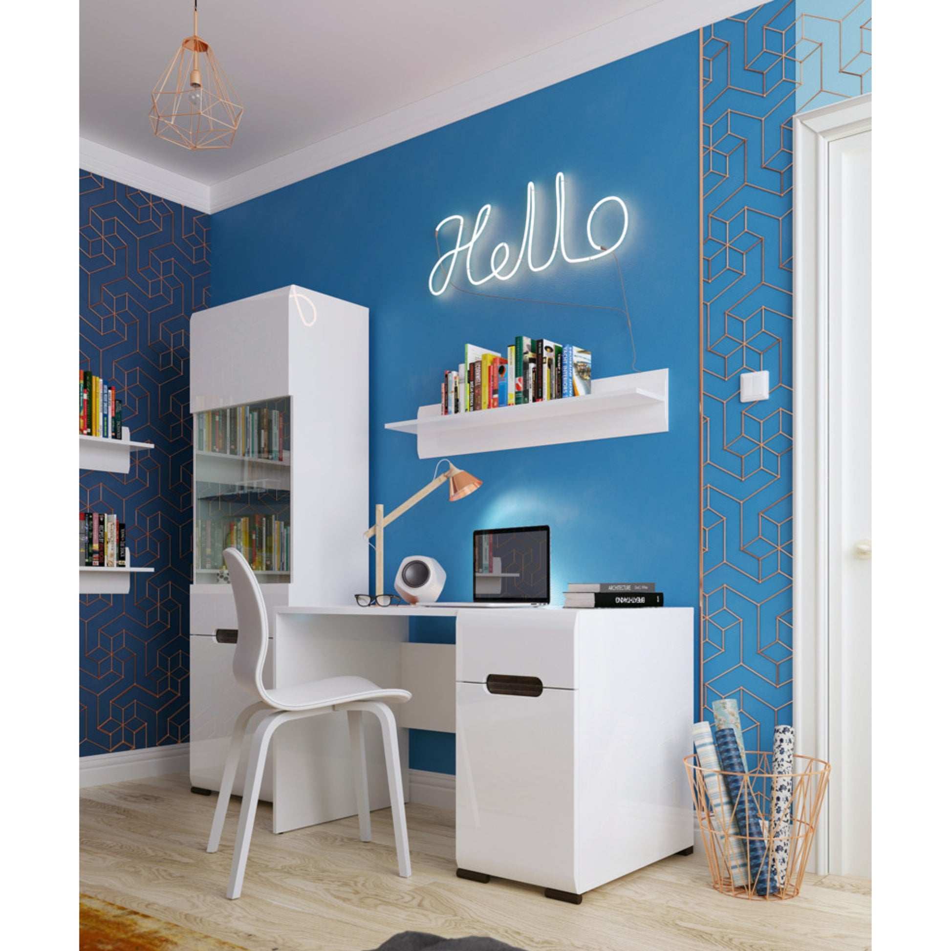 Azteca Trio Desk is an excellent addition to any home office or youth room; some use it as a dressing table. One drawer and two shelves hidden behind the high gloss white fronts are enough to hold your documents and essentials. The whole piece looks neat and modern. Check other pieces from this collection if you need more than just a desk.