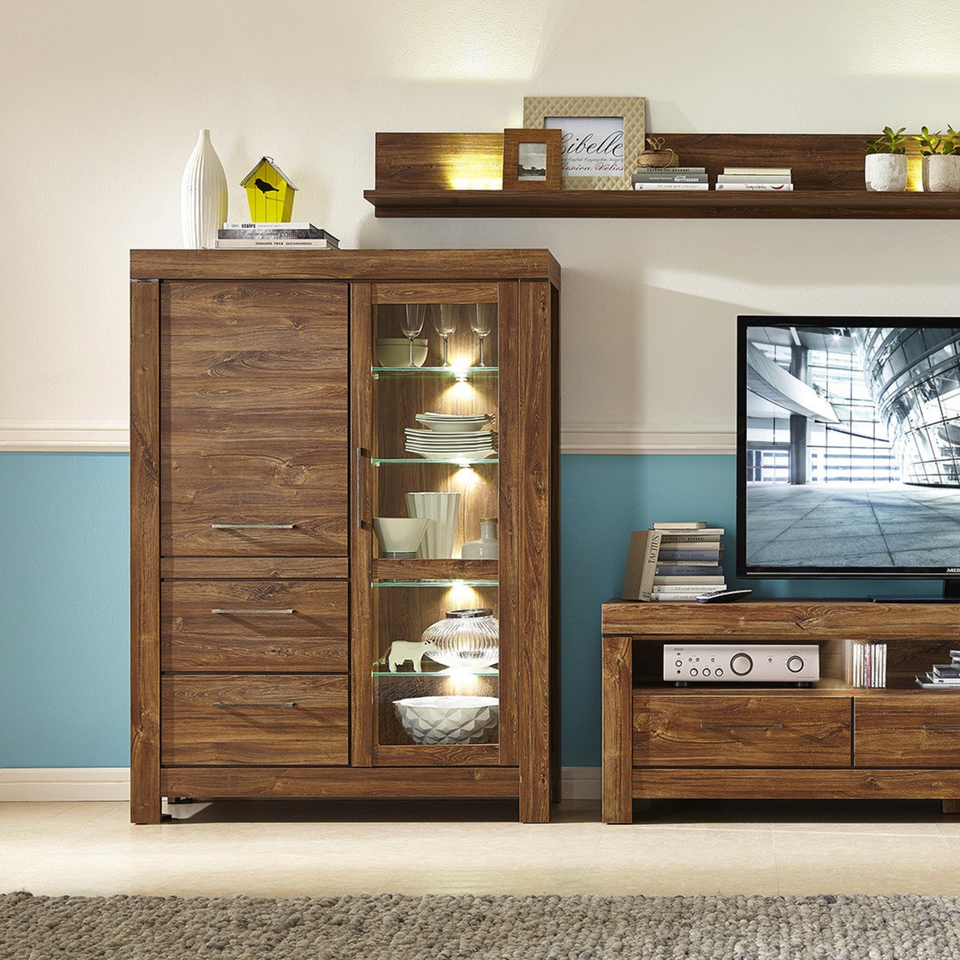 This cabinet was smartly tailored to provide you with as far storage space as possible. It combines both open and closed compartments to conceal and display at the same time. It features two ample drawers to stow home essentials handy and five shelves to display tableware and curios. The tempered glass door creates an elegant and modern look. Three additional shelves hidden behind the solid door give extra storage space. LED lights behind each shelf create an impressive display and warm atmosphere. All hinges and glides are equipped with a soft-closing mechanism for your best comfort of use. Coordinate it with other pieces from the Gent collection to create a spectacular setting for your home.