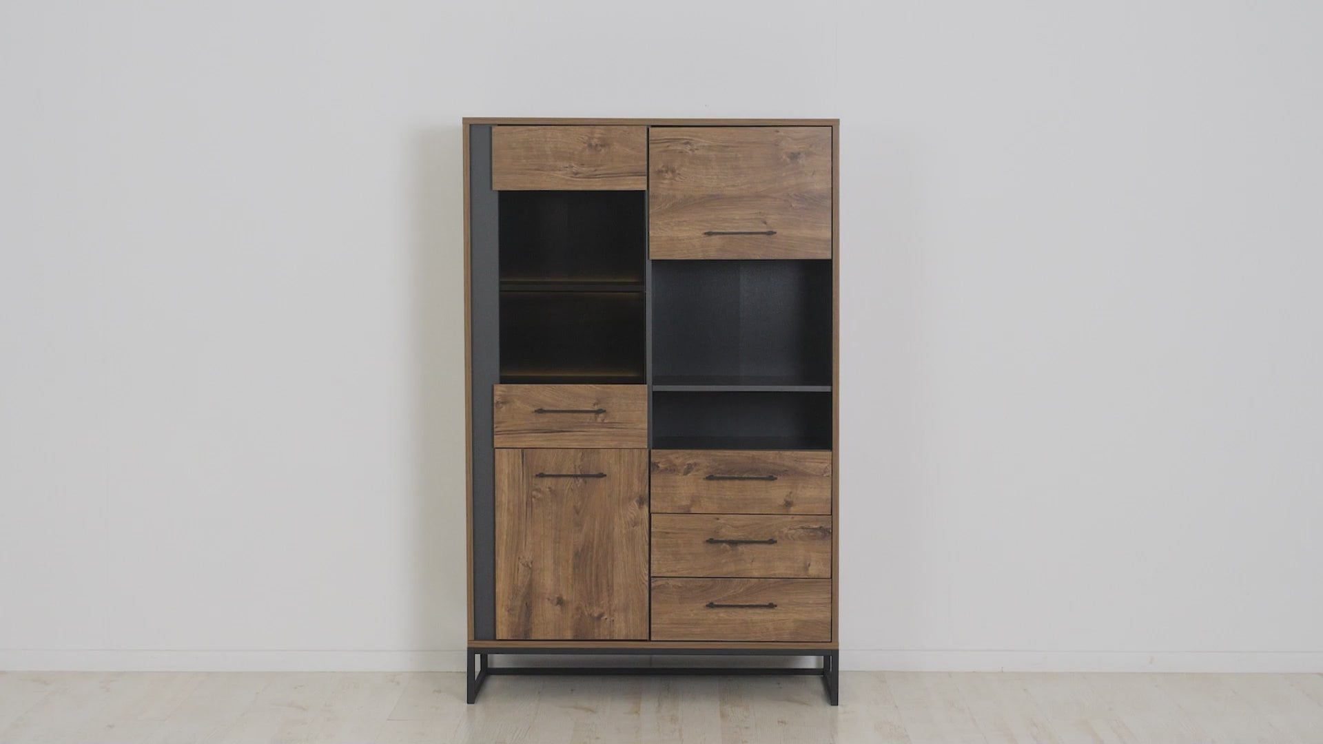 If you need various storage solutions in one piece of furniture, look no further than this Luton cabinet. Multiple drawers and shelves, concealed and open, along with built-in lighting, will do the work and look simply amazing.