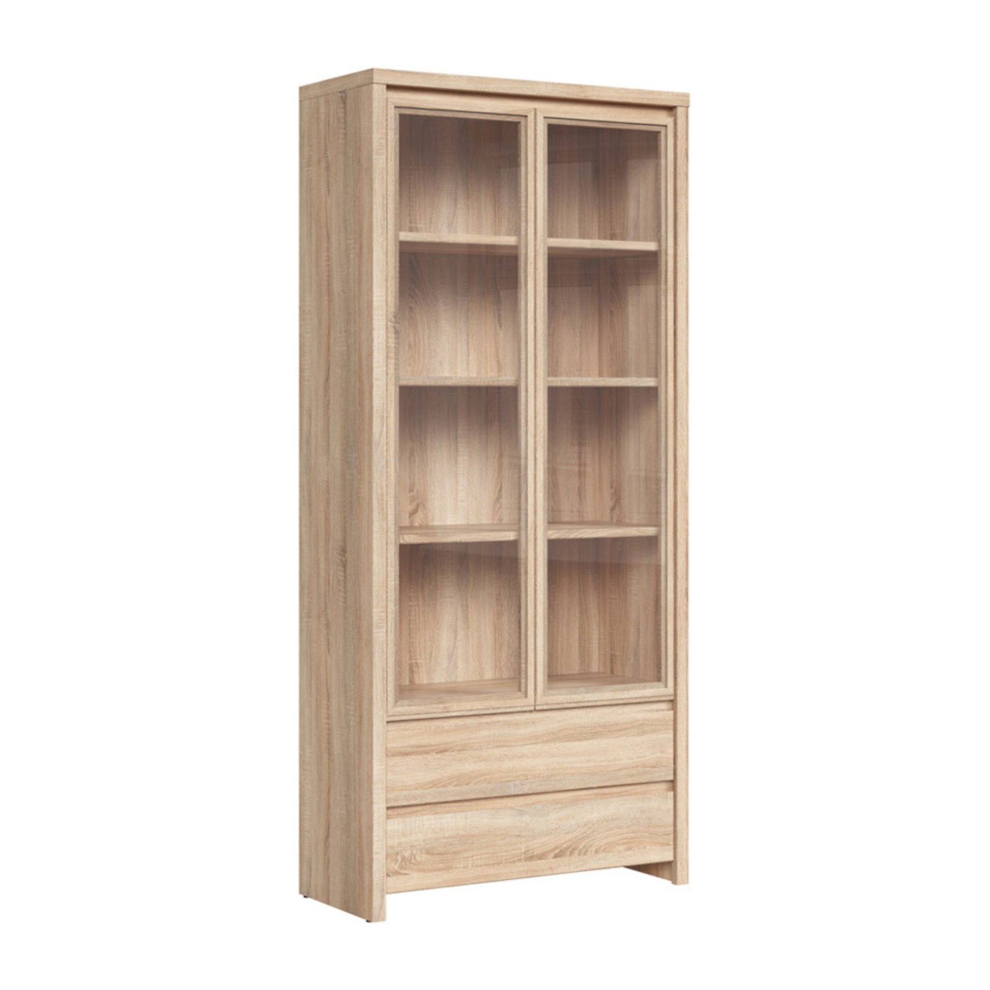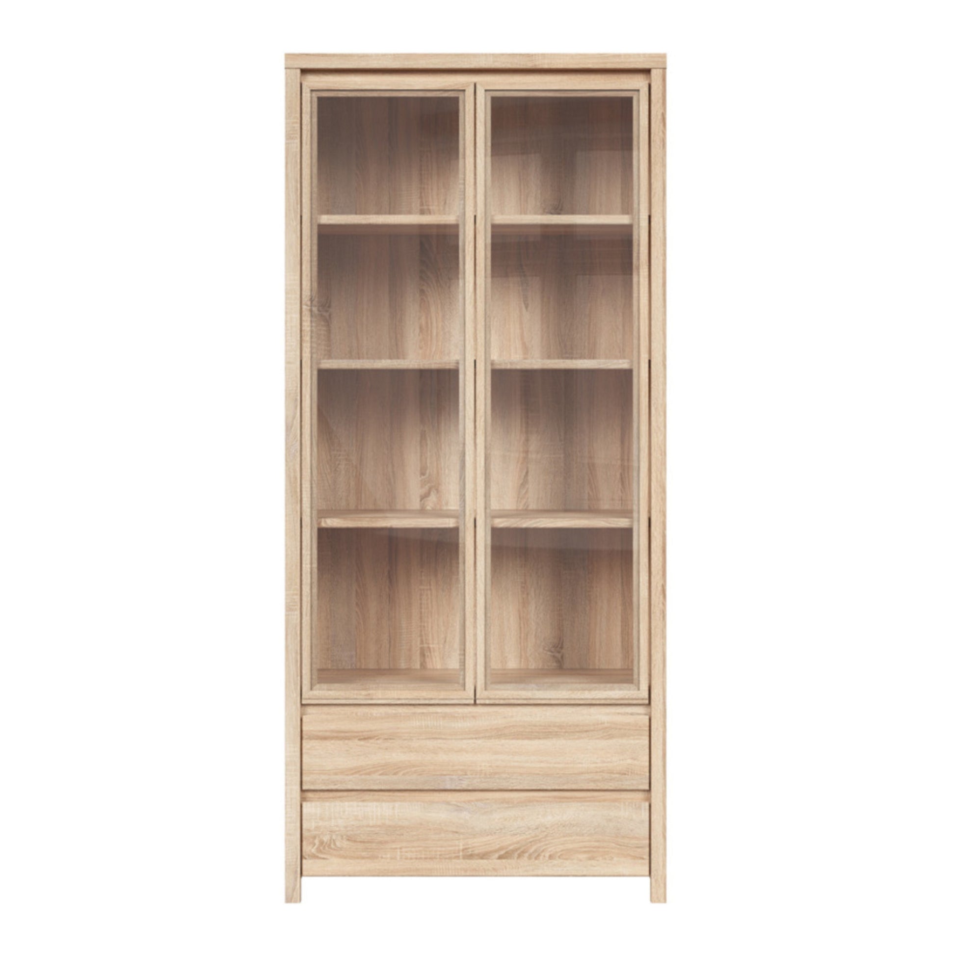 This glass-fronted double display cabinet is a great spot to show off glassware, books, trinkets and collections. Four fixed shelves will hold it all in a grand style. You will find a pair of drawers for small home essentials you want to keep handy below the display.