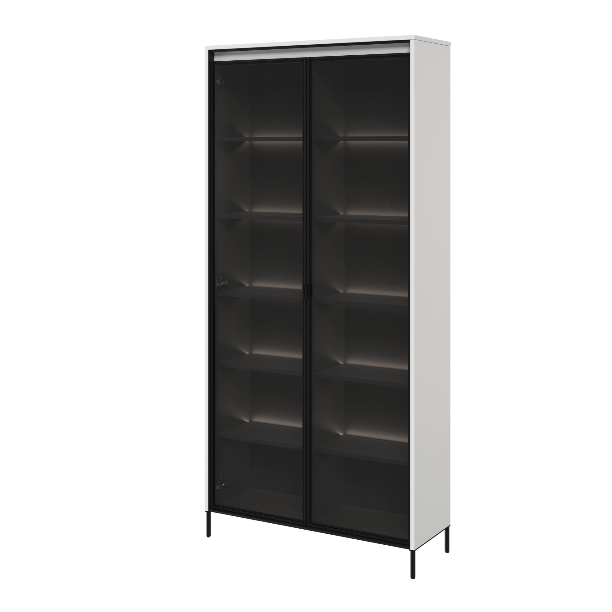 Looking for a stylish and elegant way to showcase your favourite items? Consider a glass-fronted display cabinet Trend! This sleek piece not only effectively presents trinkets and decorations but also adds a touch of sophistication to your interior. The cabinet features an LED strip installed under the top, which creates a warm ambiance. Made of high-quality materials, it is durable and long-lasting. Its minimalist design complements various interior design styles, from modern to Scandinavian or classic.