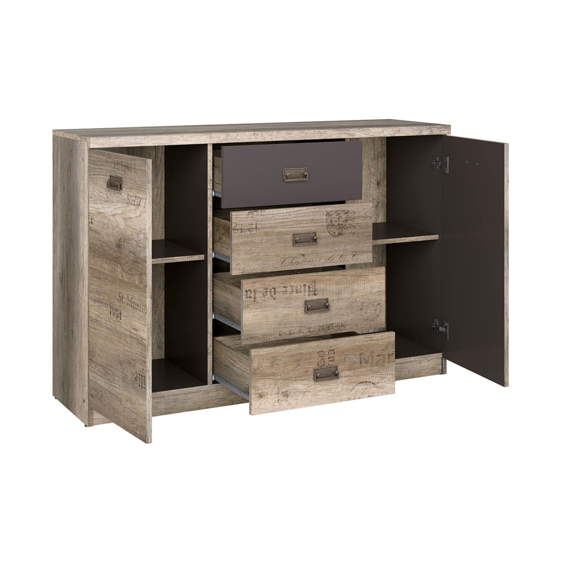 Malcolm dresser provides ample storage: two closed compartments and four drawers. It will find its place in a bed or dining room as a sideboard. The dresser's top can serve as a nice display for picture frames, books, decor or a table lamp.