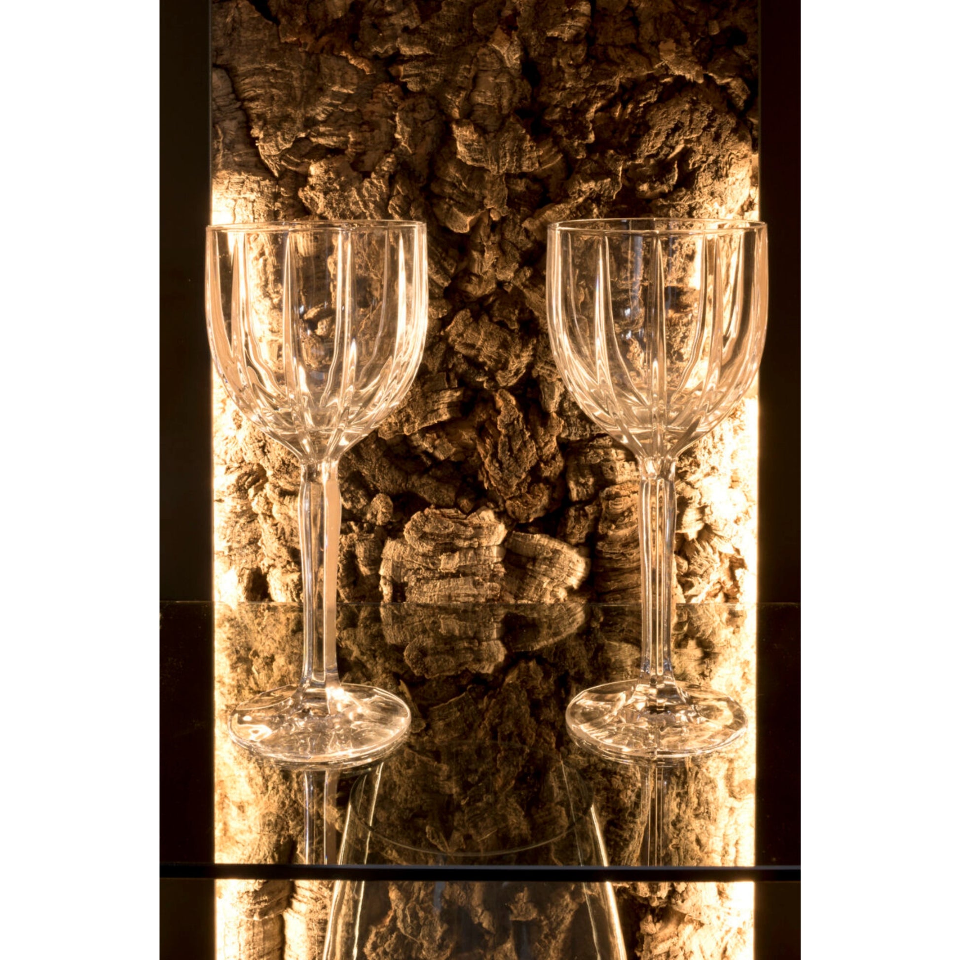 Elevate your living and dining spaces with the Corena collection - a perfect blend of nature and modern design. The collection is crafted from solid oak and natural oak veneer. Its standout feature is the decorative bark detail, illuminated by LED lighting, adding a unique touch. Graphite aluminum frames and antisol glass fronts bring a contemporary edge. With high-quality craftsmanship and cohesive design, Corena combines elegance, warmth, and functionality for a truly refined interior.