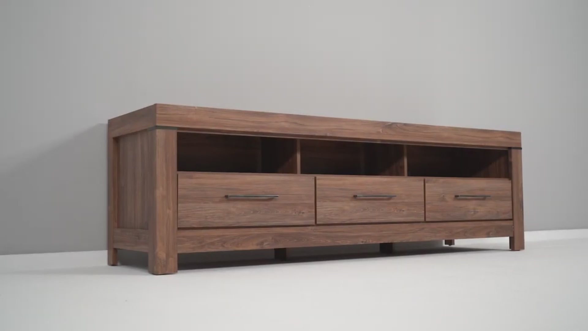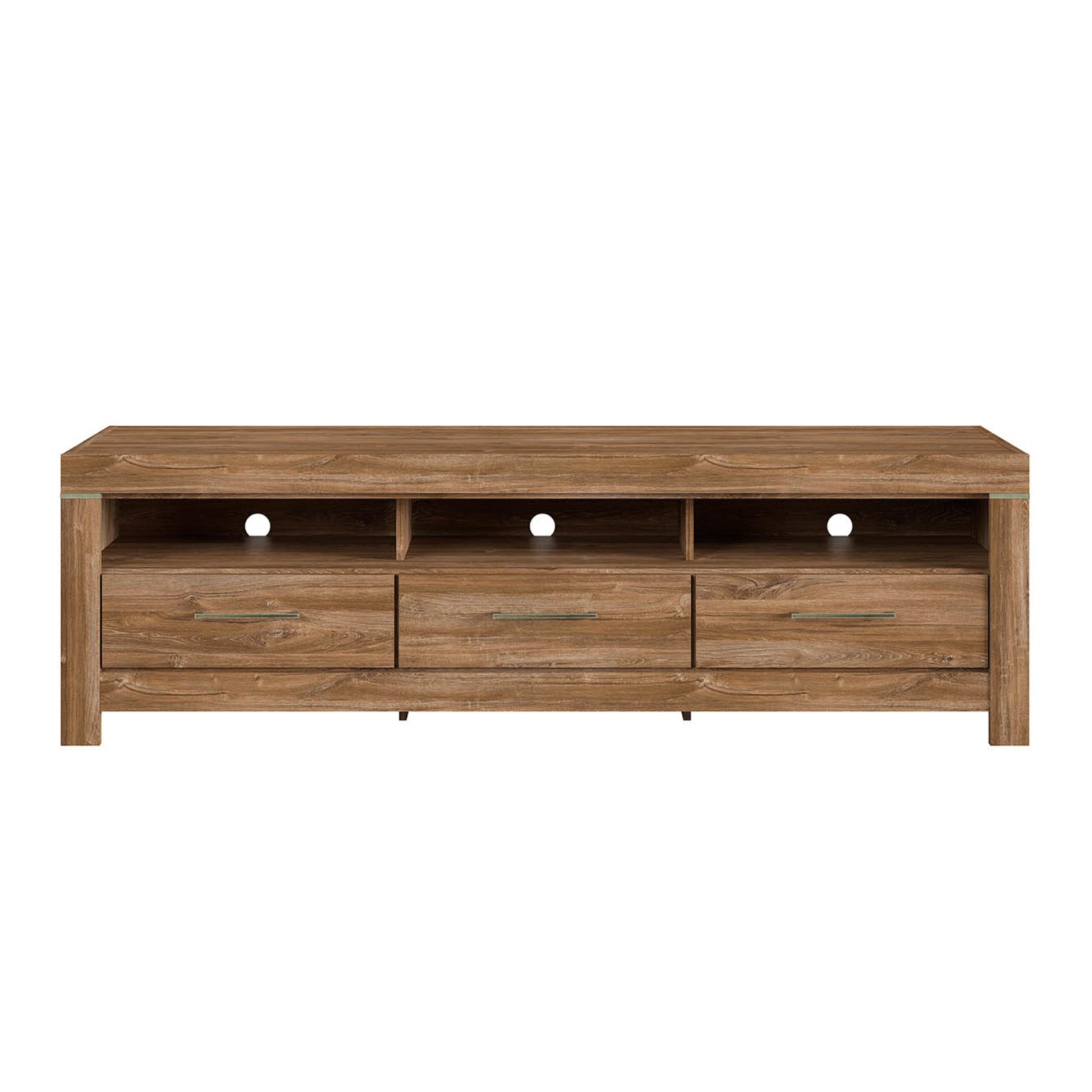The Gent collection will hypnotize all lovers of fashionable interiors. The TV stand - an integral element of every living room, features three ample drawers ready to hold essentials, remote controls, DVDs and other everyday items. All glides are equipped with a soft-closing mechanism to raise the bar of comfort. Three open shelves with ventilation and cord cutouts are a perfect spot for media compartments. Contemporary design is emphasized by LED lights that create a warm and cozy atmosphere in the room. Coordinate it with other pieces from the Gent collection and create a spectacular setting for your home.