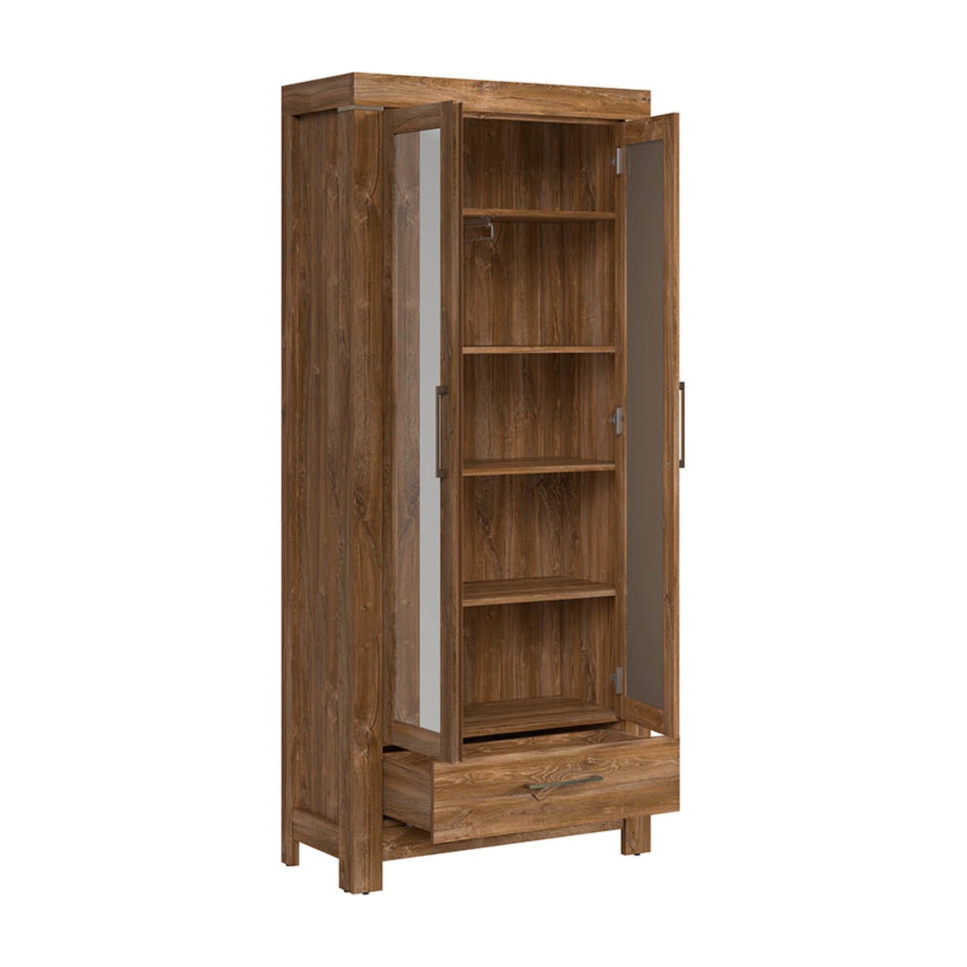The hallway is a showpiece of every home, so we want it to be picture-perfect. Gent storage cabinet is not only pretty but also a perfect solution for organizing dilemmas. Two mirrored doors conceal five shelves for clothes or other essentials. If you need to hang some clothes, nothing easier - remove shelves and use a sliding hanging bar installed on top. The bottom drawer is excellent for umbrellas, gloves and scarves. Coordinate it with other pieces from the Gent collection to create a spectacular setting for your home.