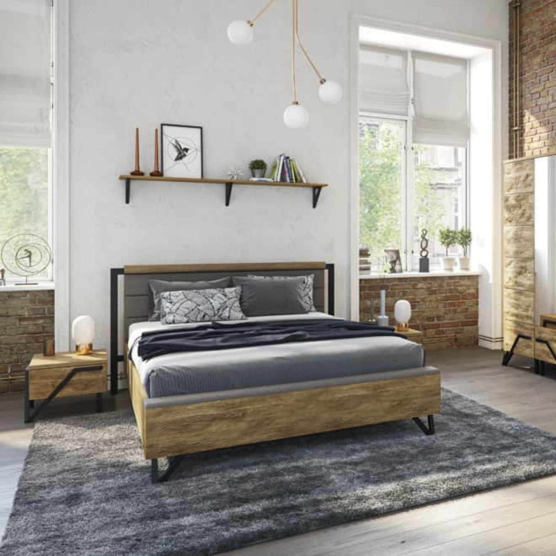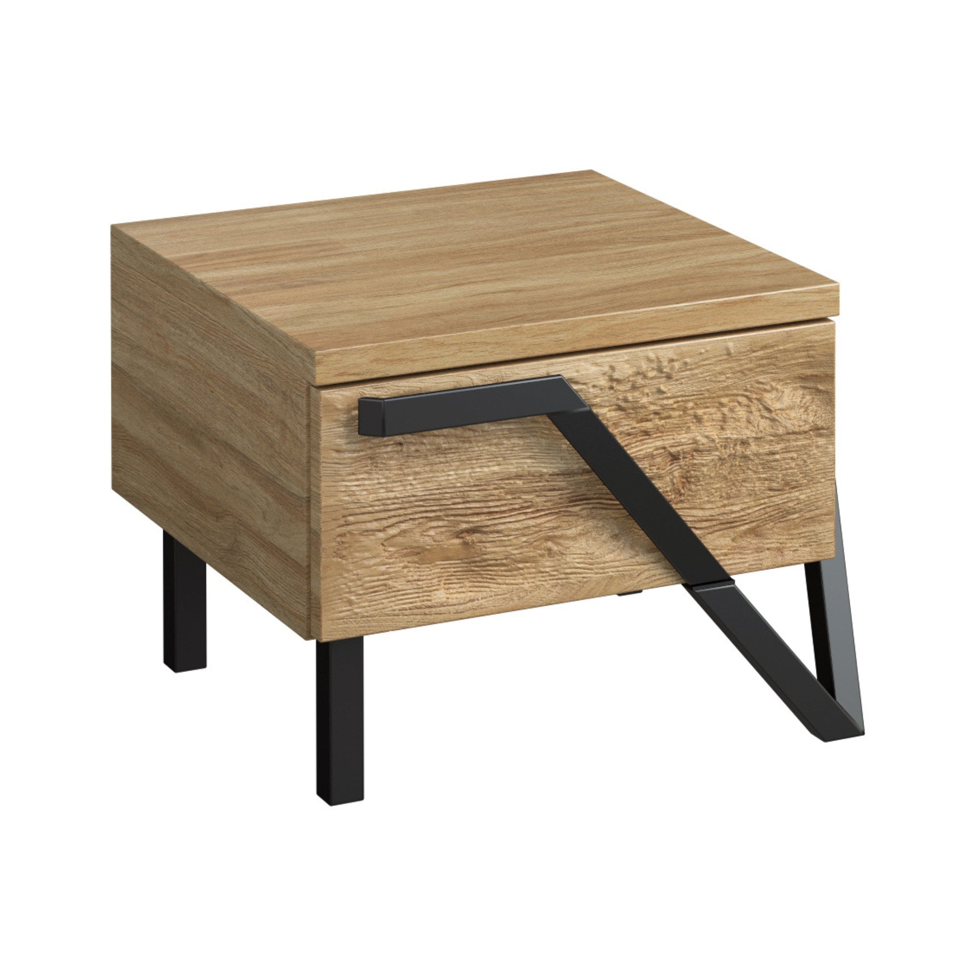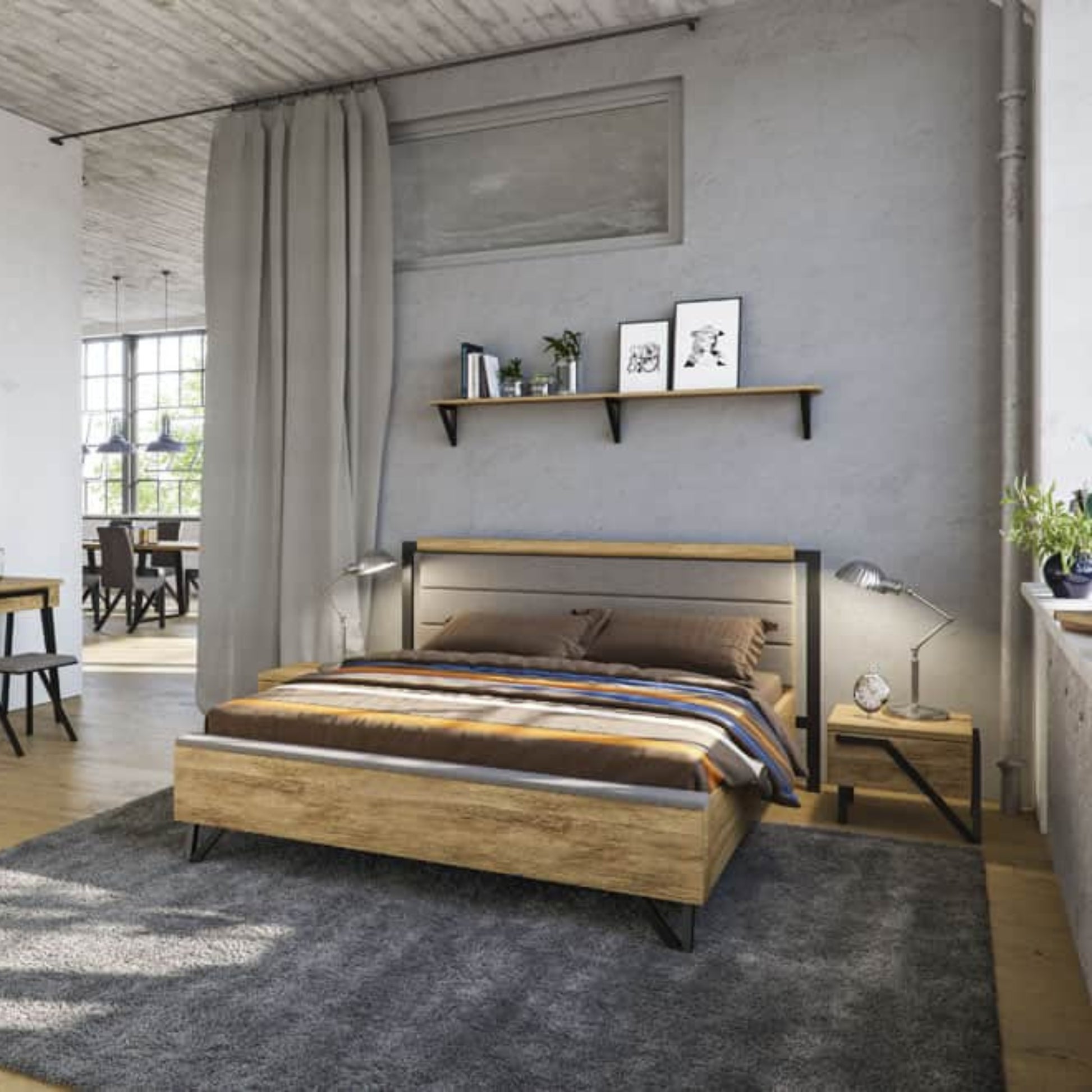 Pik is an extraordinary furniture collection for the living, dining and bedroom. It delights with its original industrial-style design and the timeless combination of natural lager oak and black colours. Bright aesthetics, along with built-in LED lights behind the glass shelves, are perfect for those who want to liven up their interiors. All the frames are finished with a natural wood veneer, while the fronts are made of deeply structured solid oak planks. Thanks to this, no two pieces are the same. Geometrical, high black iron legs emphasize the loft style and add an airy look to the solid frames. For the best comfort of use, the fronts are equipped with soft-close hinges and glides.