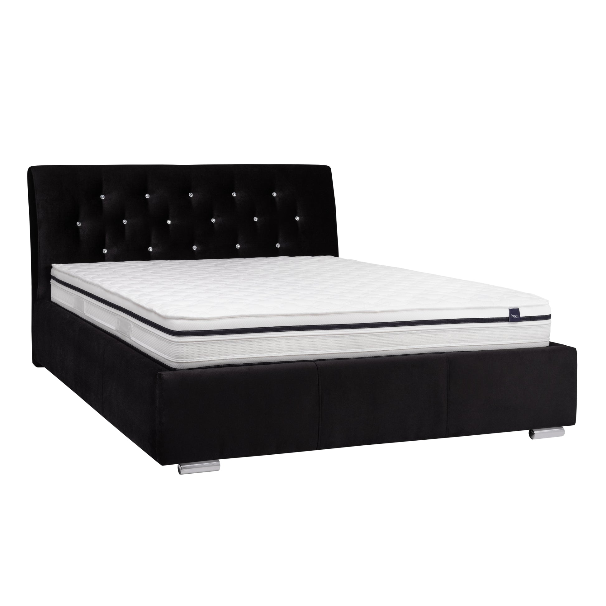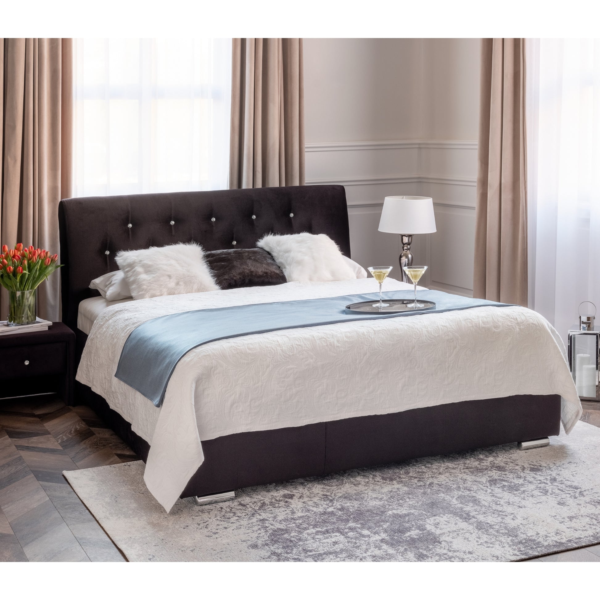 If you are on the hunt for a bed that will make you feel enveloped in comfort, add softness and style to your bedroom, and will last for years to come... Amore bed may be your choice. Most of all, its well-padded, gently curved headboard gives excellent support to lean on when reading, watching TV or scrolling on the iPad. The height is just right to do so. The classic triple row of tufts finished with crystals is a bang-in-a-trend. Flush-to-floor upholstered rails and footboard create a consistent look and a frame for ample storage hidden under the sturdy steel construction with sprung wooden slats on a gas-lift mechanism. The storage interior is made of a neat, white laminated board. Mattress perches on 50 high-quality beech slats. What more can we ask for?