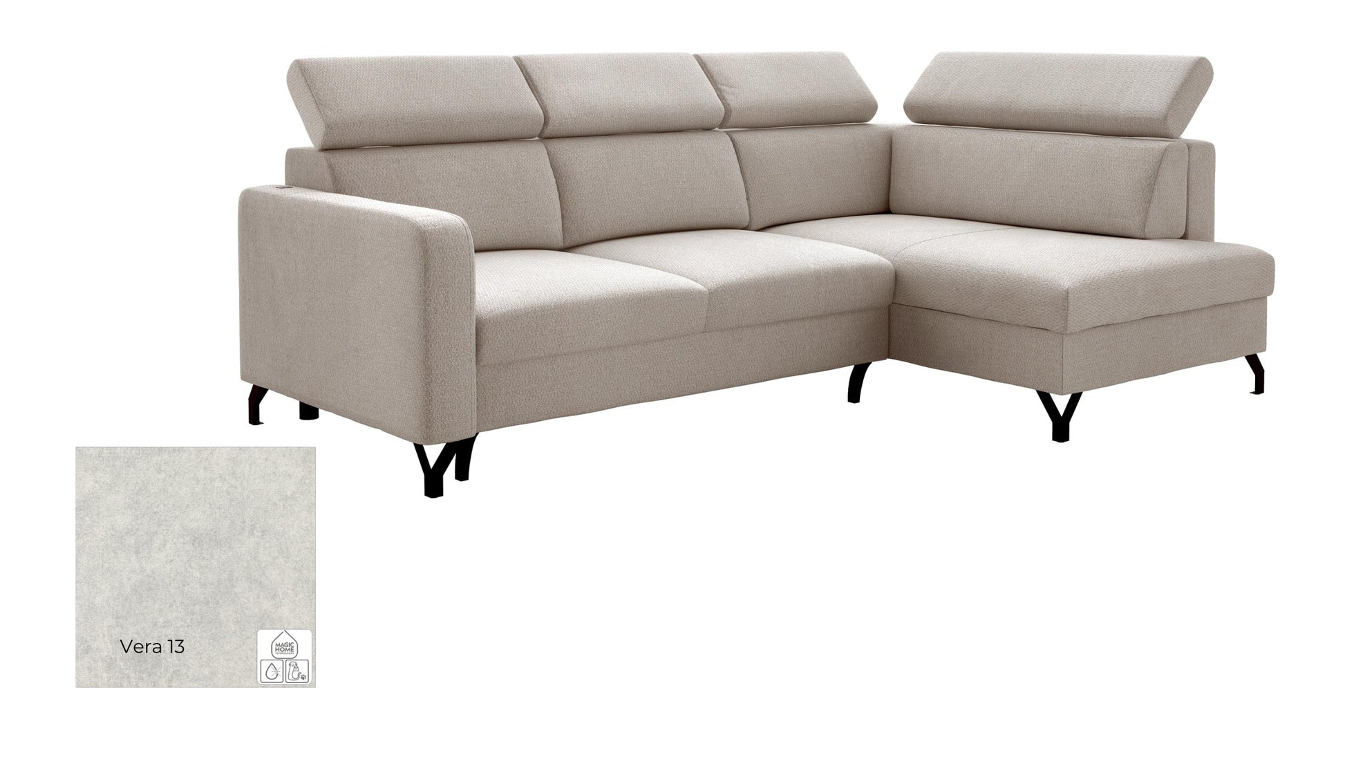 Introducing the Allicante corner sofa - a perfect blend of elegance, functionality, and unique style. This sofa is designed to provide you with an exceptional seating experience, with its highly elastic HR foam ensuring unmatched comfort and support. Its versatility and practicality make it a perfect fit for any interior style, doubling as a guest bedroom with its optimized sleeping function and bedding container. The sofa's 12 cm legs add lightness to the entire structure, making it a masterpiece that combines comfort, style, and functionality.