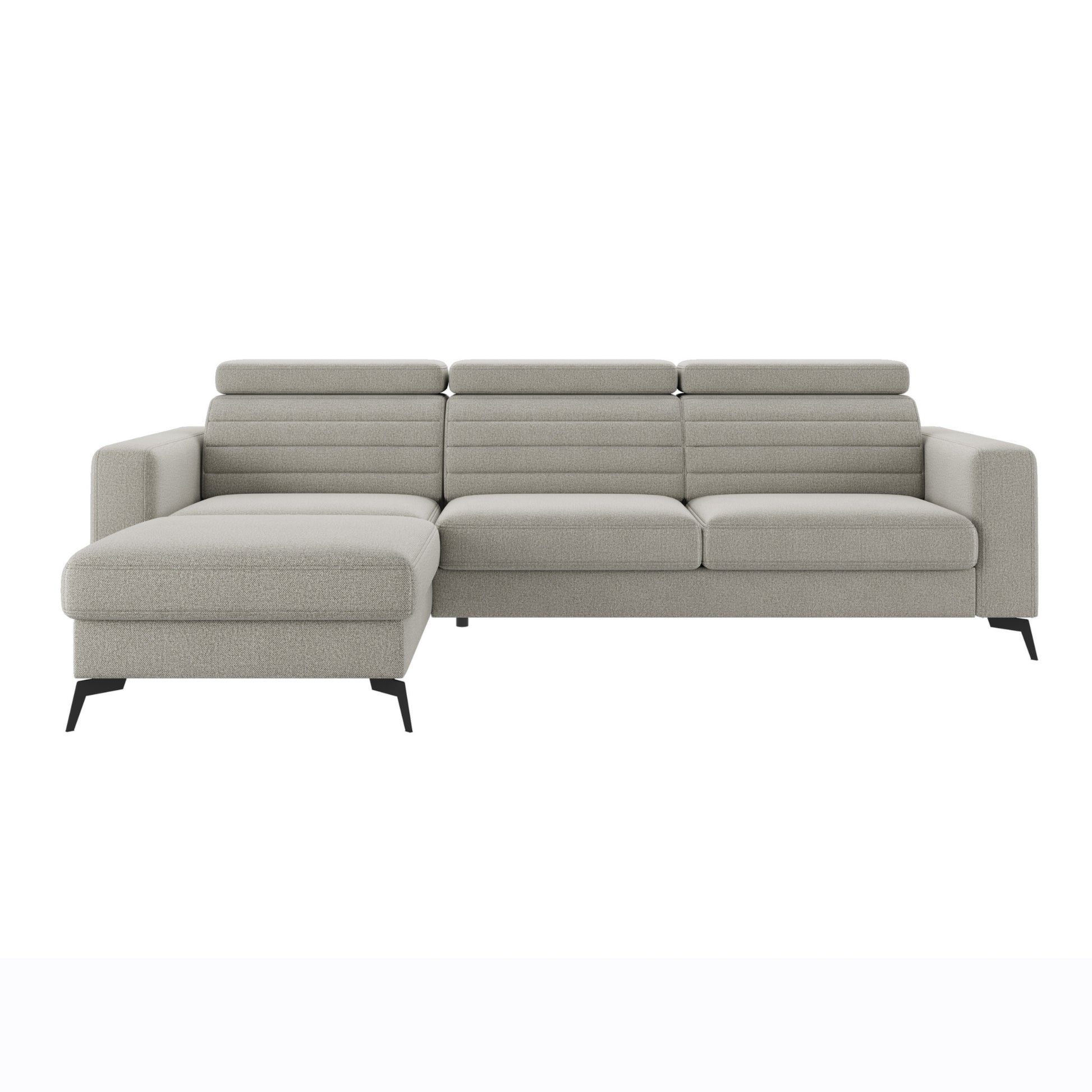 The Amaro sectional sofa is a unique and stylish solution that is ideal for small spaces. Its 12 cm high legs lend an airy and light appearance, while the horizontal stitching on the backrest and adjustable headrests add distinctive character. The seats are filled with a combination of resilient, highly flexible foam and durable corrugated springs, ensuring superior comfort and longevity.