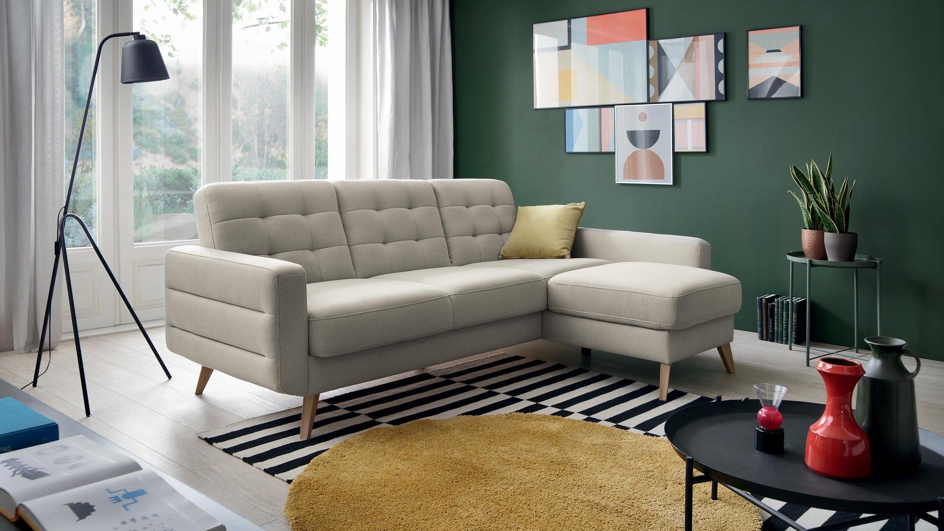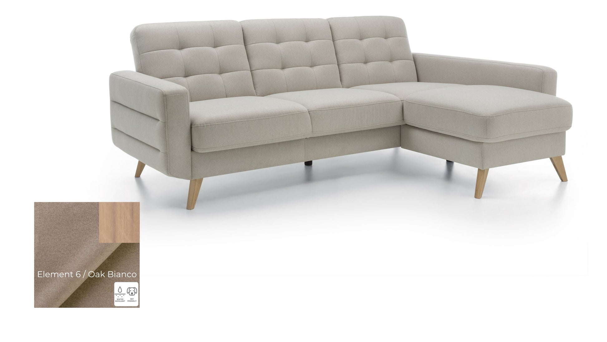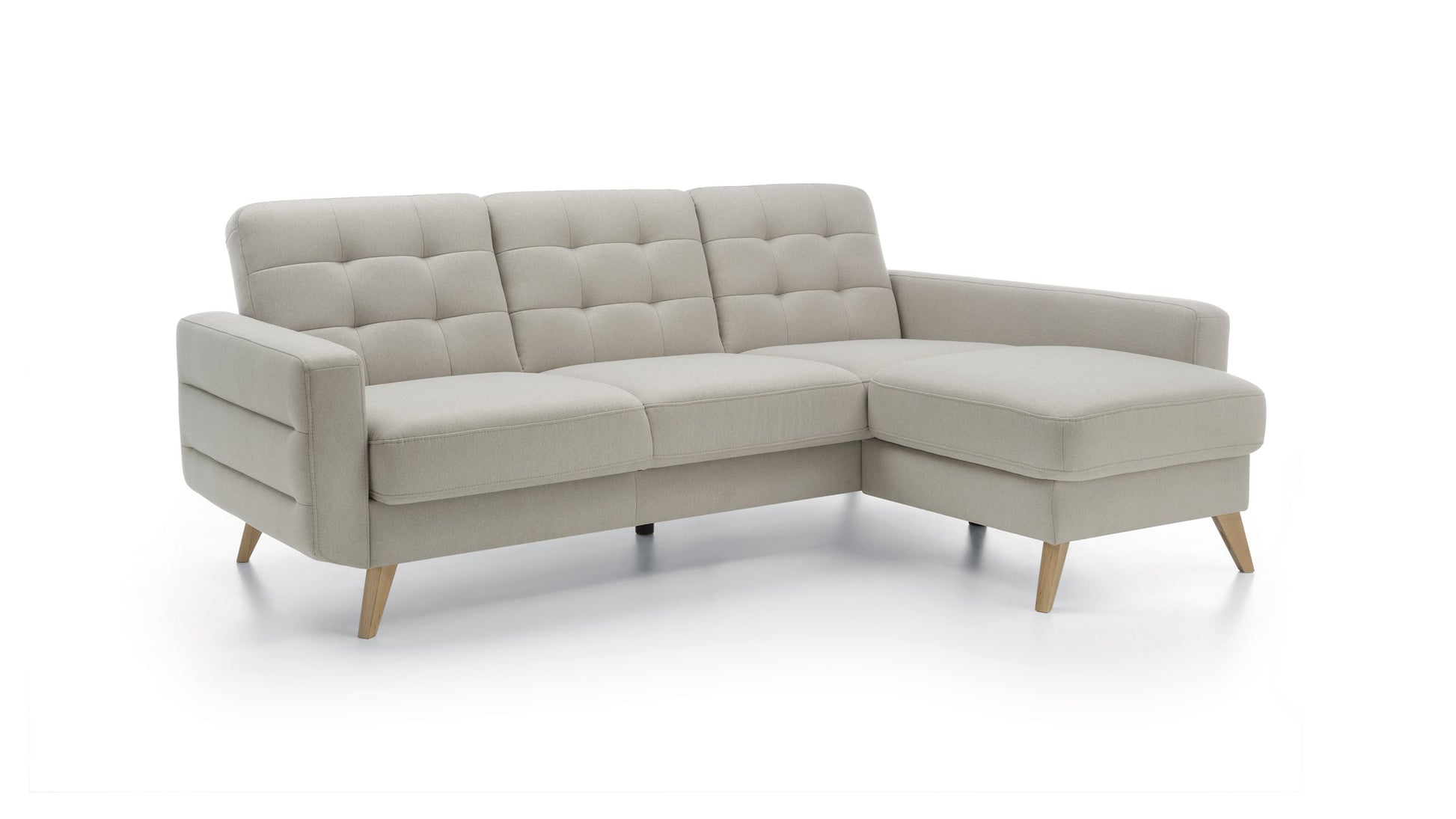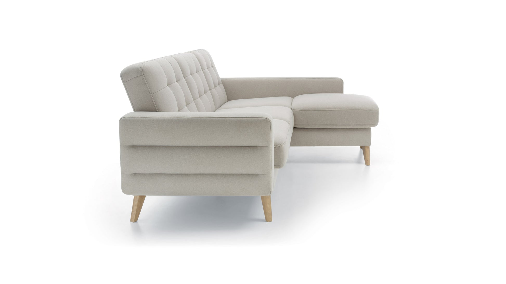 Introducing a stylish and comfortable sectional sofa Bodo that is sure to elevate the look and feel of your living space. With its sleek design and cozy cushions, this sofa provides both comfort and style. The clean lines and geometrical tufting on the backrest and armrests are simply beautiful, and it will definitely add a touch of modern sophistication to any stylish interior. The tapered legs and compact size create an airy profile that will suit small spaces perfectly.