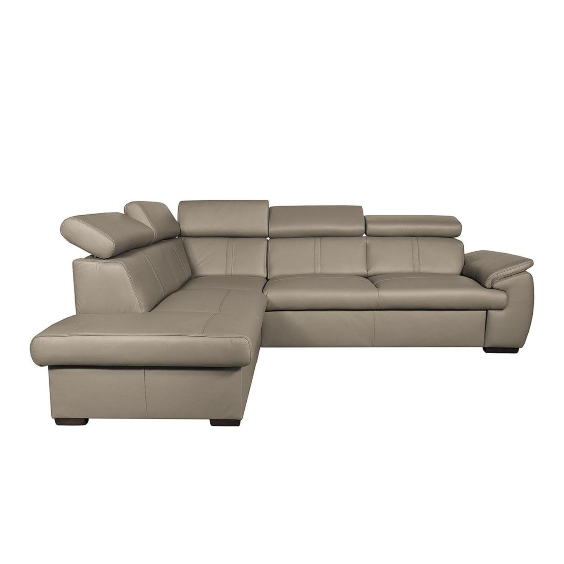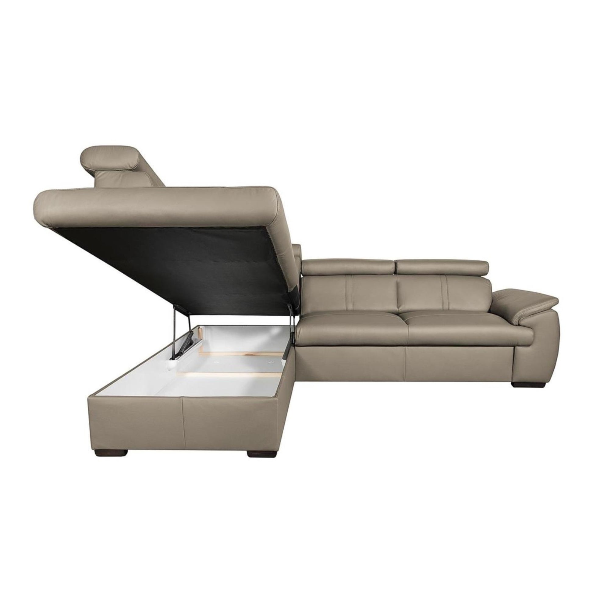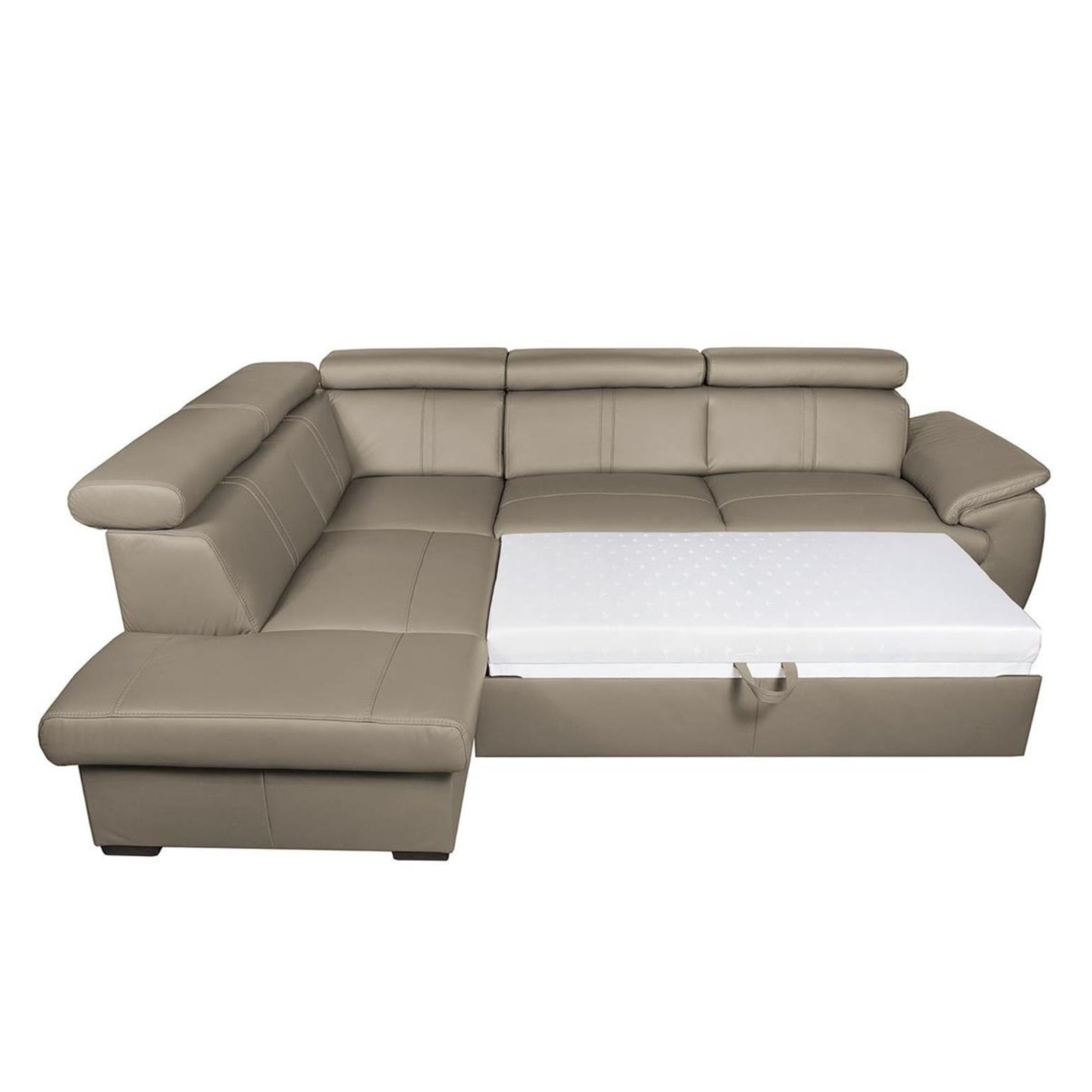 This corner sofa is a natural oasis of well-being. Thanks to the high-quality leather upholstery and generous dimensions, City is ideal for relaxing. This sectional dazzles with its attractive appearance, determined by the distinctive silhouette, decorative topstitching on the seat and back and a wide padded armrest. Additionally, five adjustable headrests will help support your back how you want by ensuring the angle you crave. You will be thrilled to find that City is beautiful and versatile; this model features a fold-out bed and storage for linens and throws.
