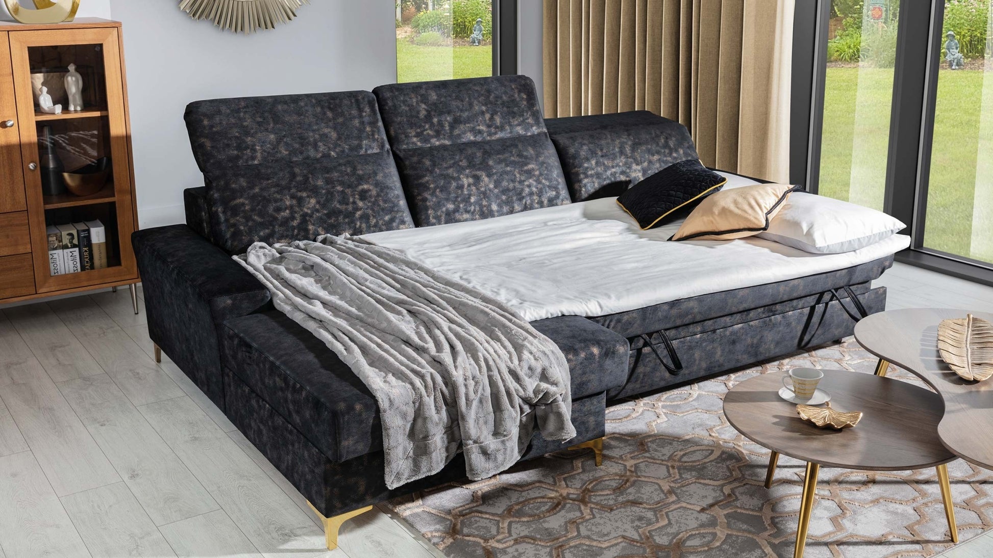 Are you in search of a stylish sectional sofa to enhance your living room? Diverso - a stunning mid-century modern design might be just what you need. Its deep seats and adjustable headrests provide unparalleled comfort and allow you to switch easily between sitting upright and lounging in complete relaxation. The spacious size and inviting appearance make it ideal for entertaining friends or enjoying a movie marathon with your loved ones. The best part? Diverso can effortlessly transform into a roomy bed for two, complete with ample storage space under the chaise for bedding and extra blankets.