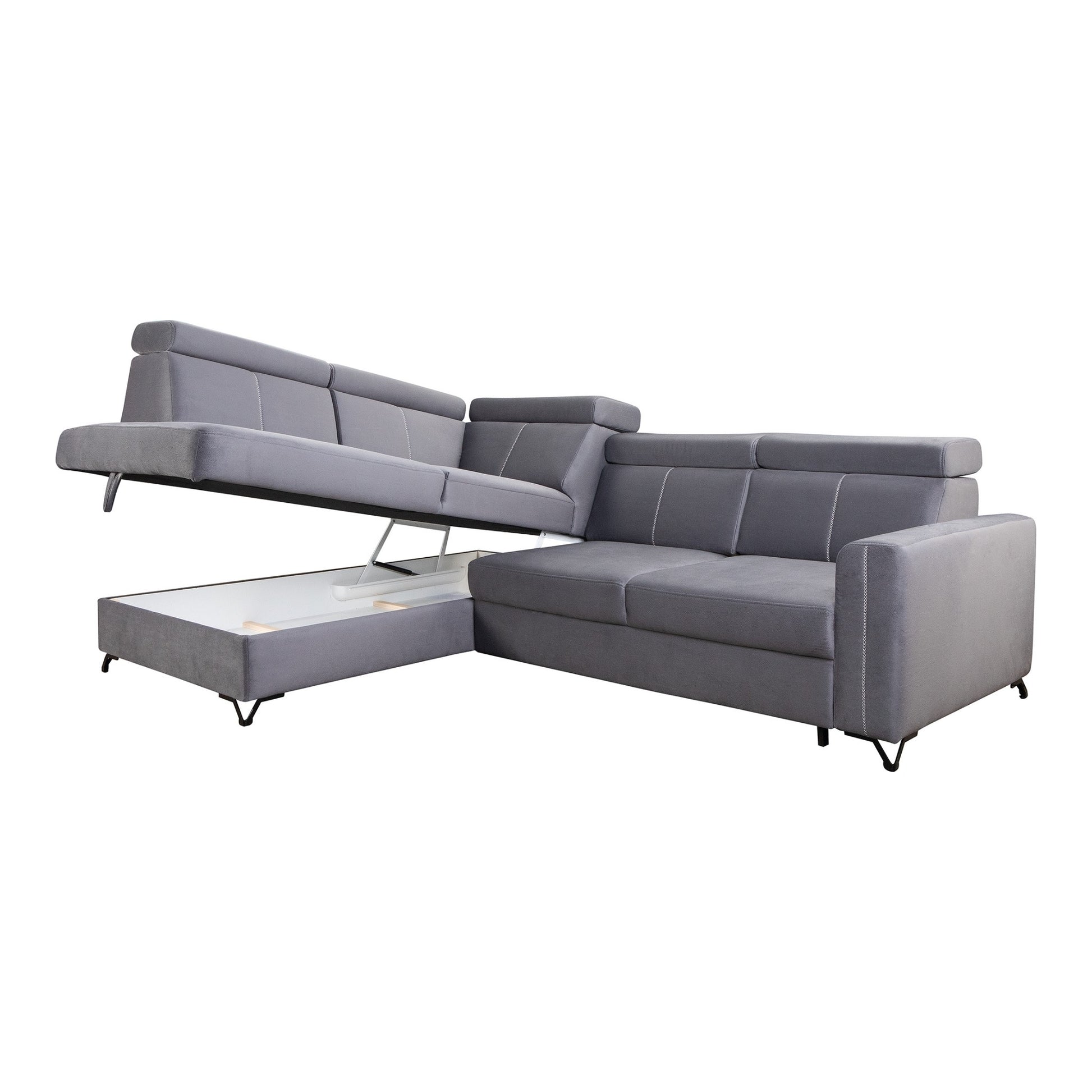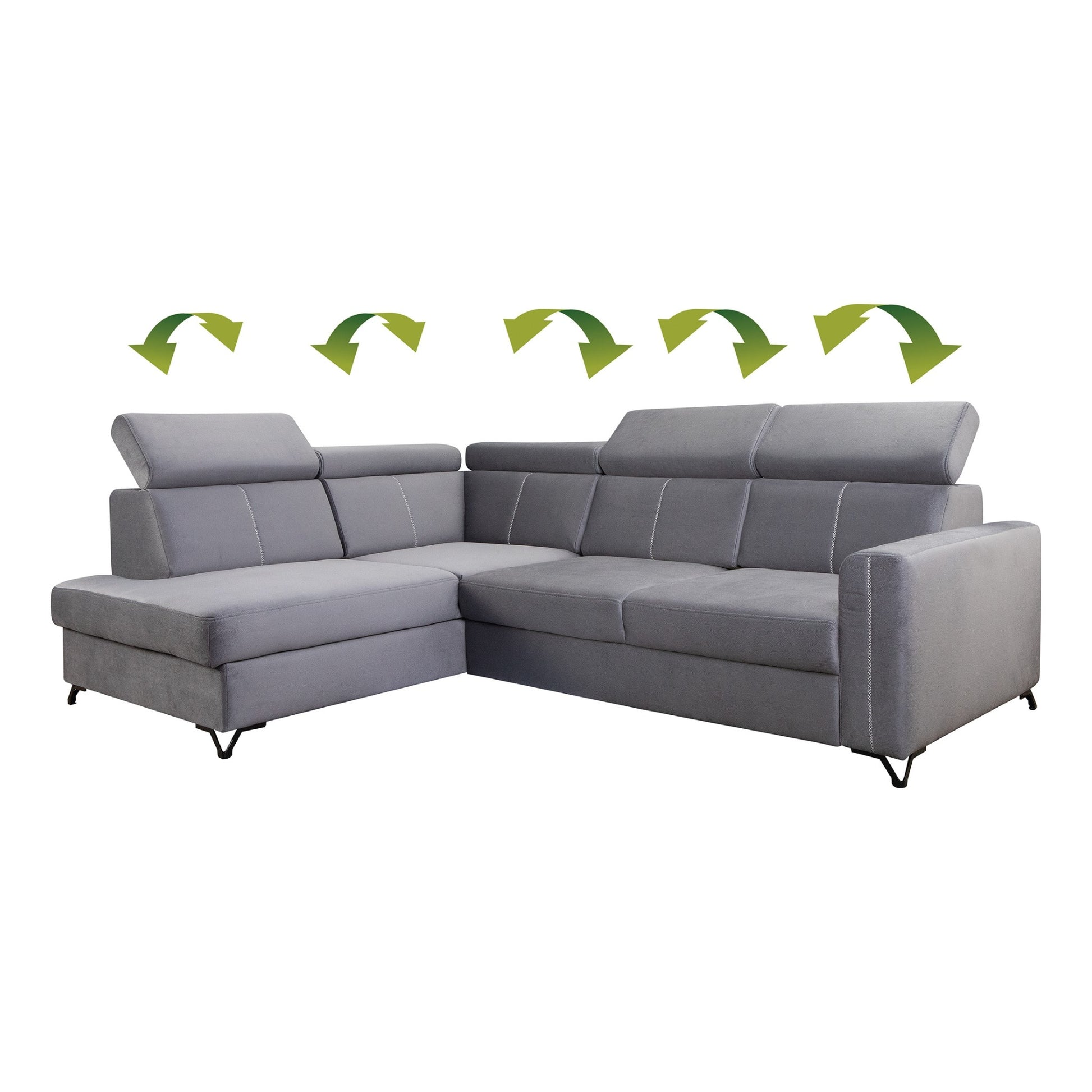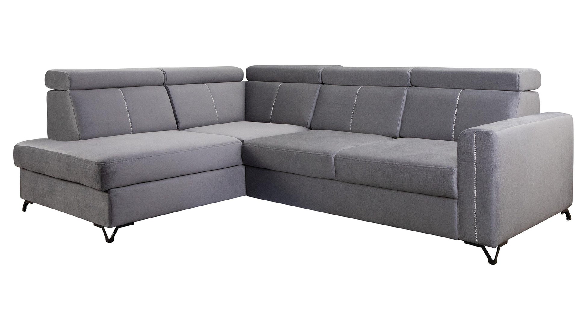 Elbrus is a modern sectional with clean lines and the ultimate finishing touch. Back cushions and armrest are adorned with decorative stitching that can have a contrasting colour. The seat is divided into separate cushions, resulting in no movement from each cushion to the next for your best comfort. Sofa perches on brass black matte legs add a light vibe. Five adjustable headrests are raising the bar of comfort significantly. No matter where you sit, your head and neck can rest easily with the proper support (height range: 85-104cm).