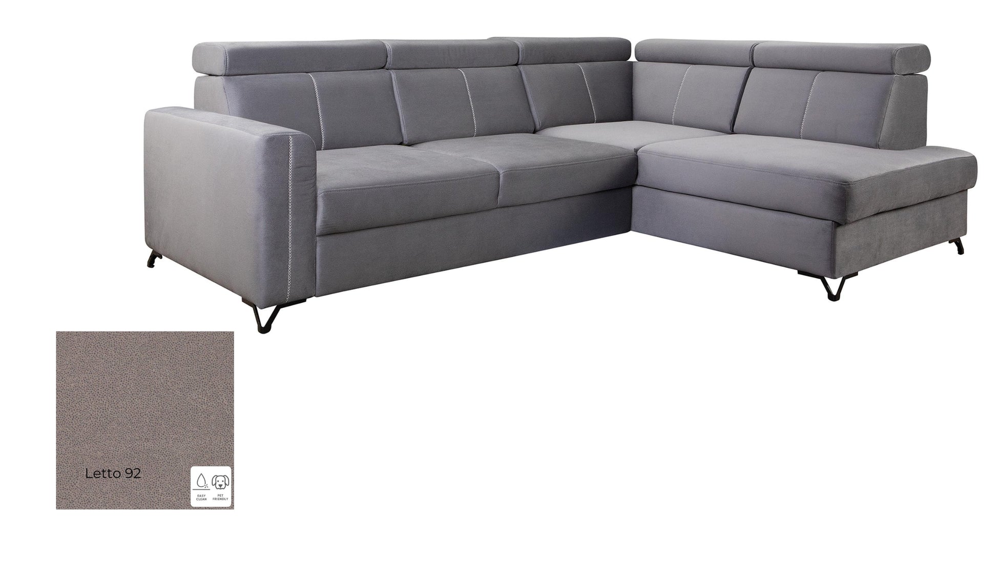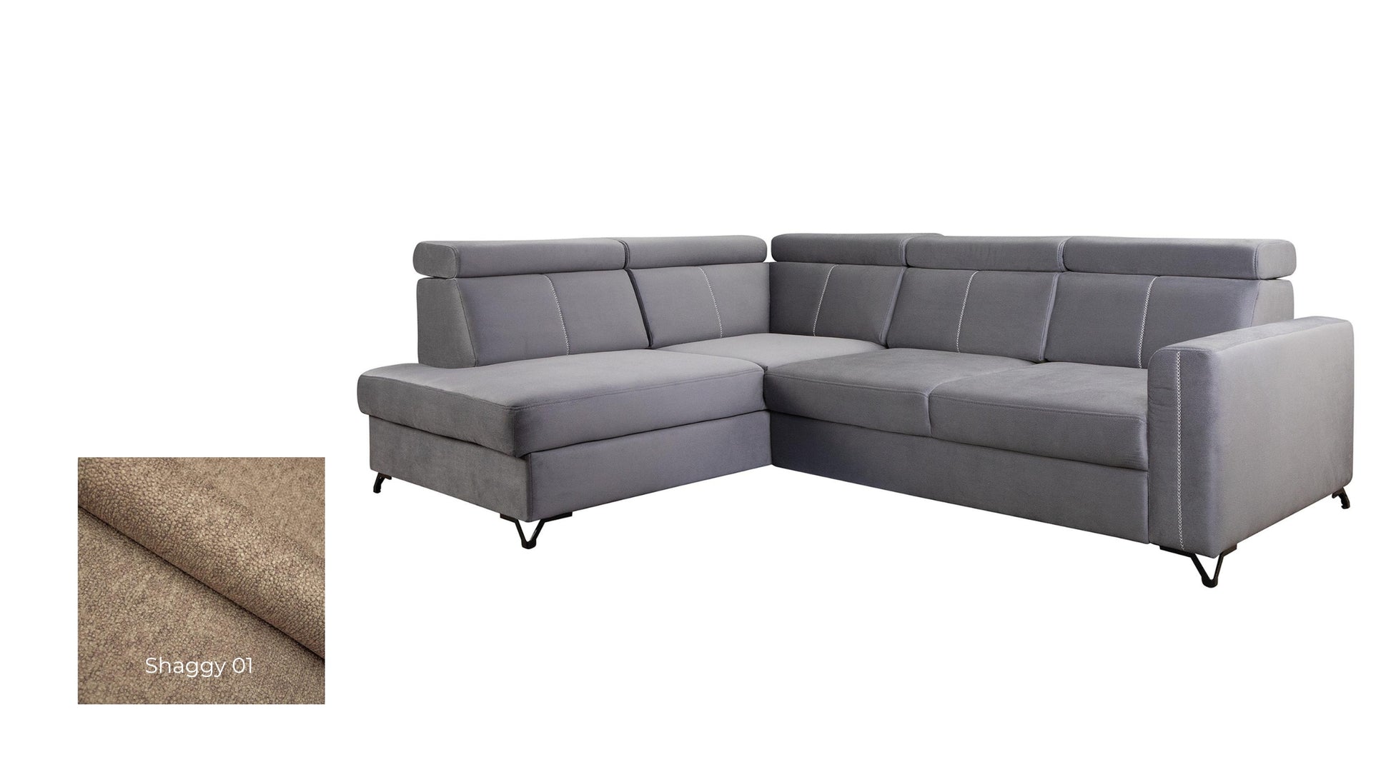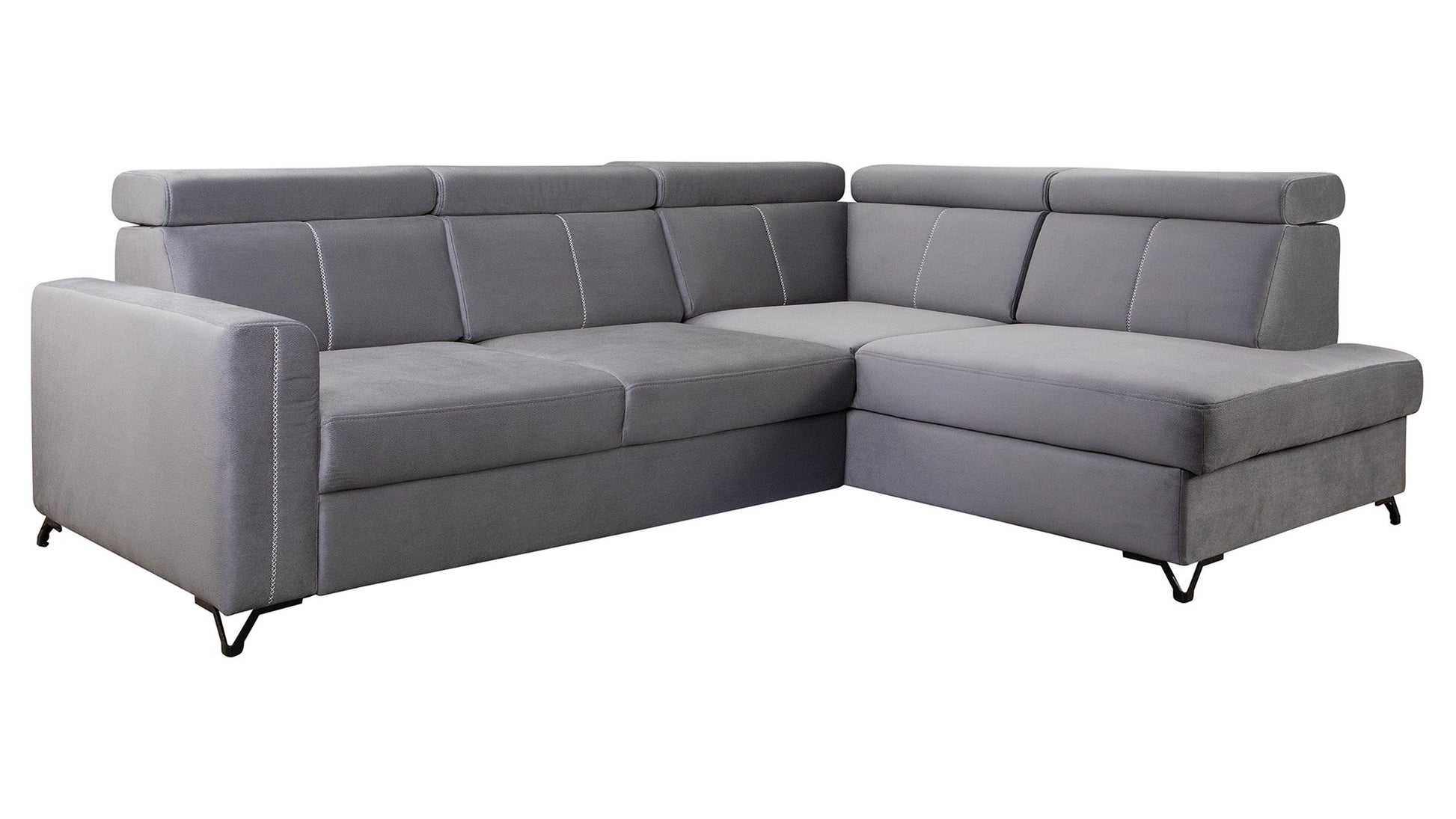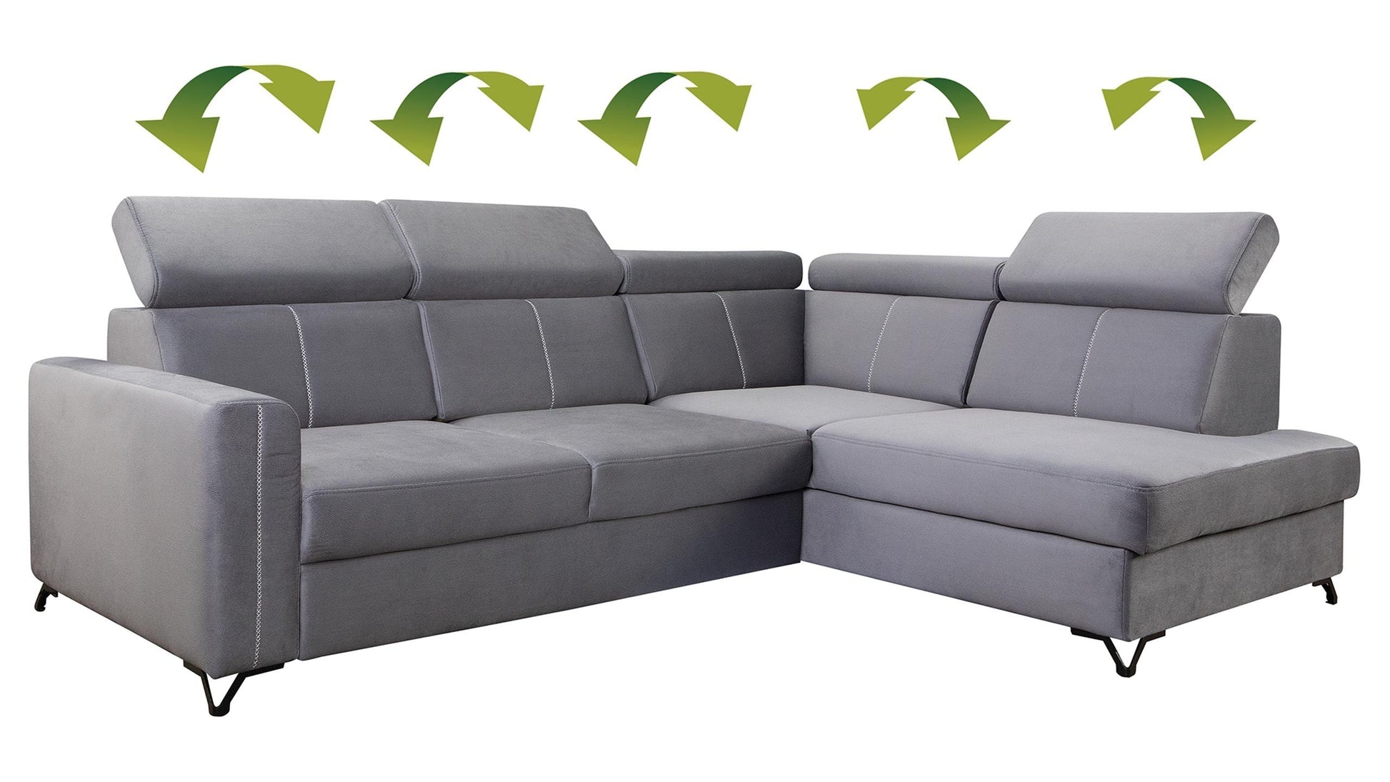 Elbrus is a modern sectional with clean lines and the ultimate finishing touch. Back cushions and armrest are adorned with decorative stitching that can have a contrasting colour. The seat is divided into separate cushions, resulting in no movement from each cushion to the next for your best comfort. Sofa perches on brass black matte legs add a light vibe. Five adjustable headrests are raising the bar of comfort significantly. No matter where you sit, your head and neck can rest easily with the proper support (height range: 85-104cm).
