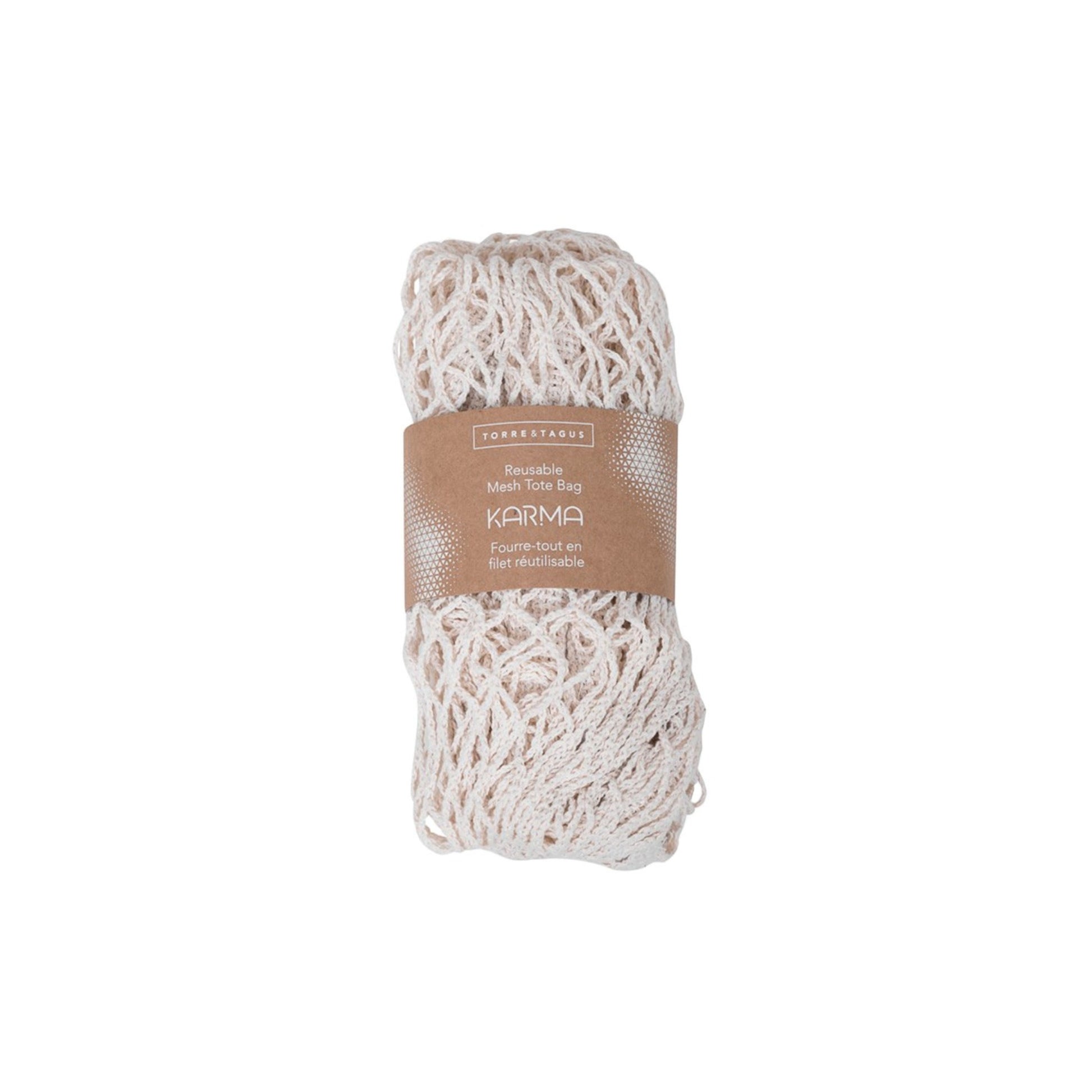 Style becomes sustainable with this eco-friendly tote. Lightweight and durable, this reusable cotton mesh bag will take you from the grocery store to the beach. Holds approximately 17.5 lbs (8kg).