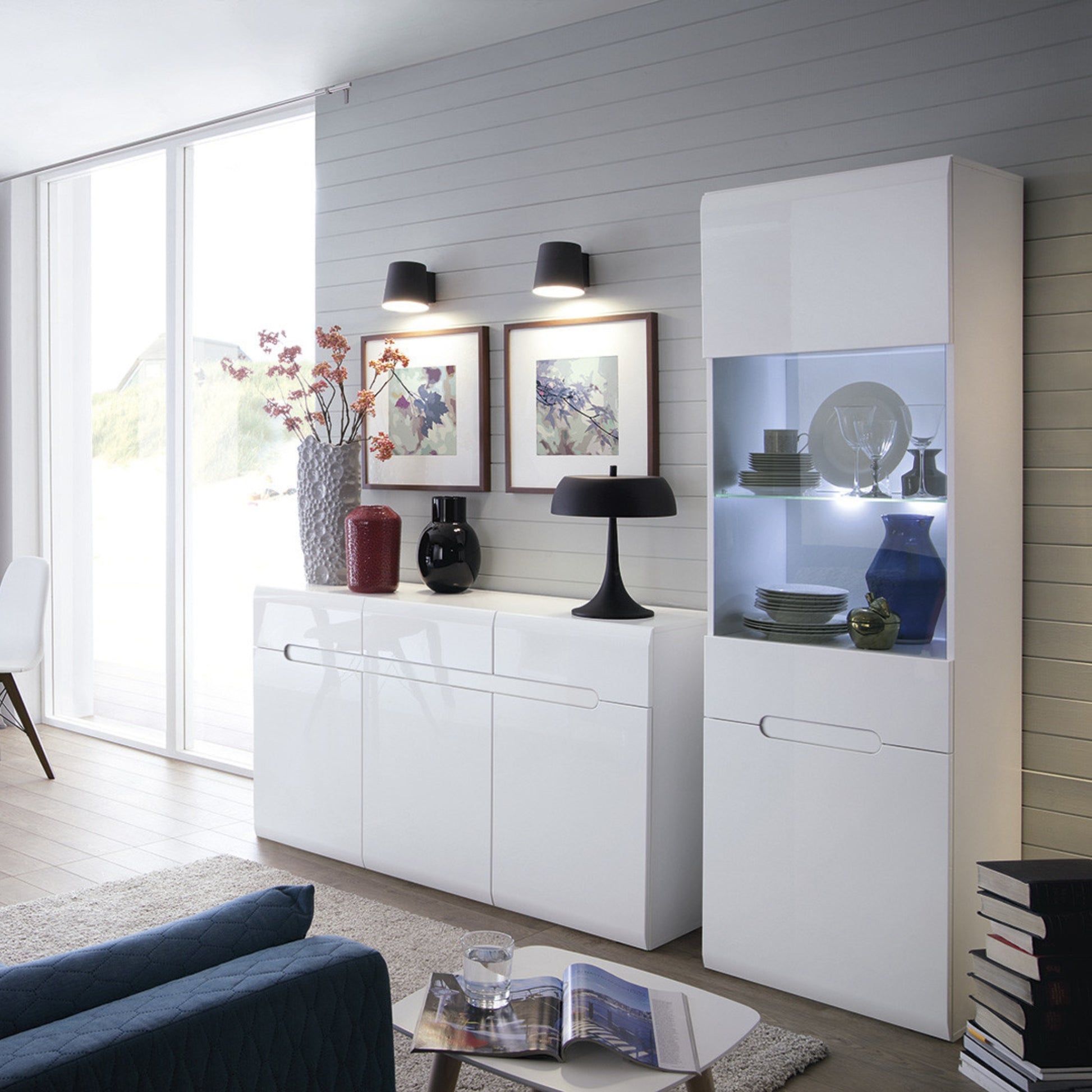 Azteca Trio may be your choice if you seek simple elegance yet stand-out pieces for your living space. This collection follows the latest trends. Its white colour will brighten any room and stay stylish throughout time. High gloss white fronts reflect its modern look. The soft closing system will make Azteca Trio pieces a pure pleasure for everyday use.