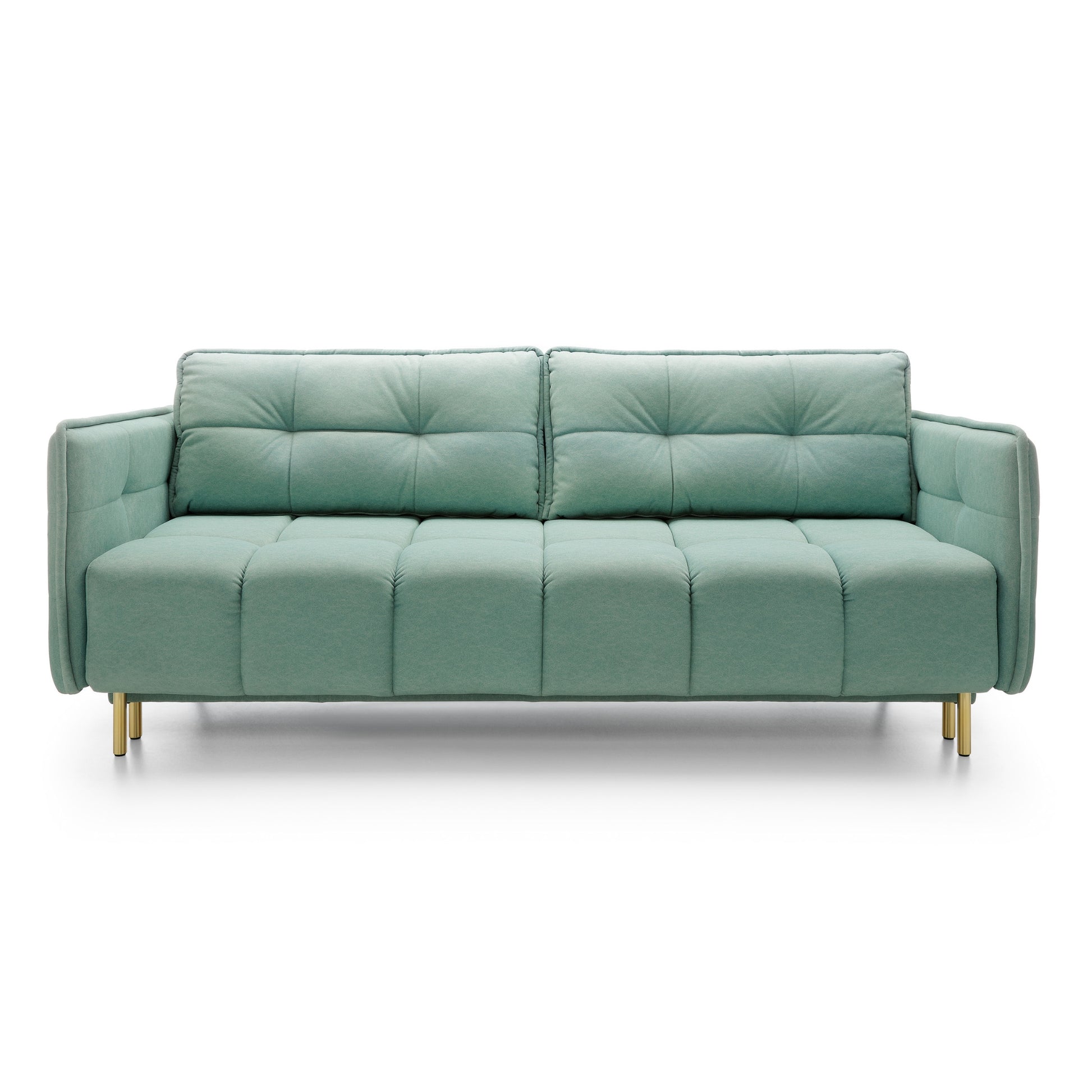 Our Cavola sofa is a harmonious combination of modern style, comfort and attention to detail. It impresses with its unusual aesthetics and functionality. Beautiful tufts on the seat, backrests, and sides give it a unique elegance, while gold high legs emphasize its modern character. The Timeless design allows this piece to adapt effortlessly to the existing decor in the living room.