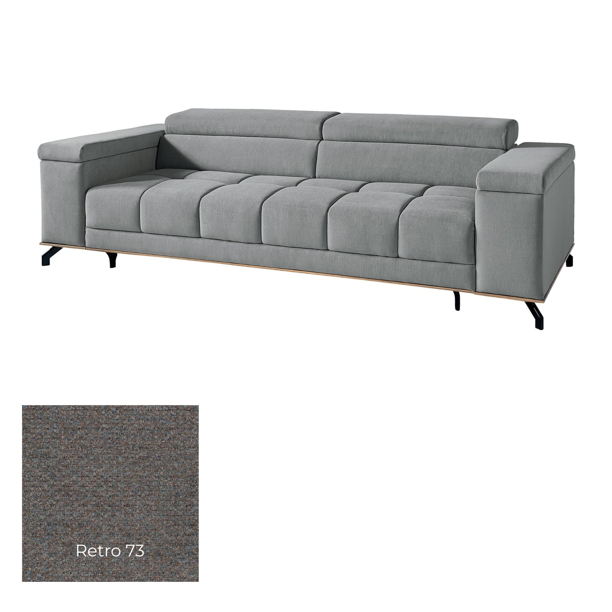Party is a piece you will adore, and it will make a stirring impression on your guests. Grid tufted seat is nestled between wide track arms with handy storage compartments hidden under hinged lids. Wood trim under the sofa emphasizes Party's sophisticated silhouette, and it can be stained in a few available colours to match your interior. Sofa perches on slim black matte legs that go outwards. This adds some loft and an airy look to the whole massive piece. The very low back looks industrial and modern, but if you want to sit upright with good back support, lift the headrest and gain an extra 21 cm high on the back (full height range 74-95cm). This inviting sofa ensures an incredibly comfortable lounging experience, and if you need an extra bed for your guests, Party easily opens up for a roomy double-size sleeper.