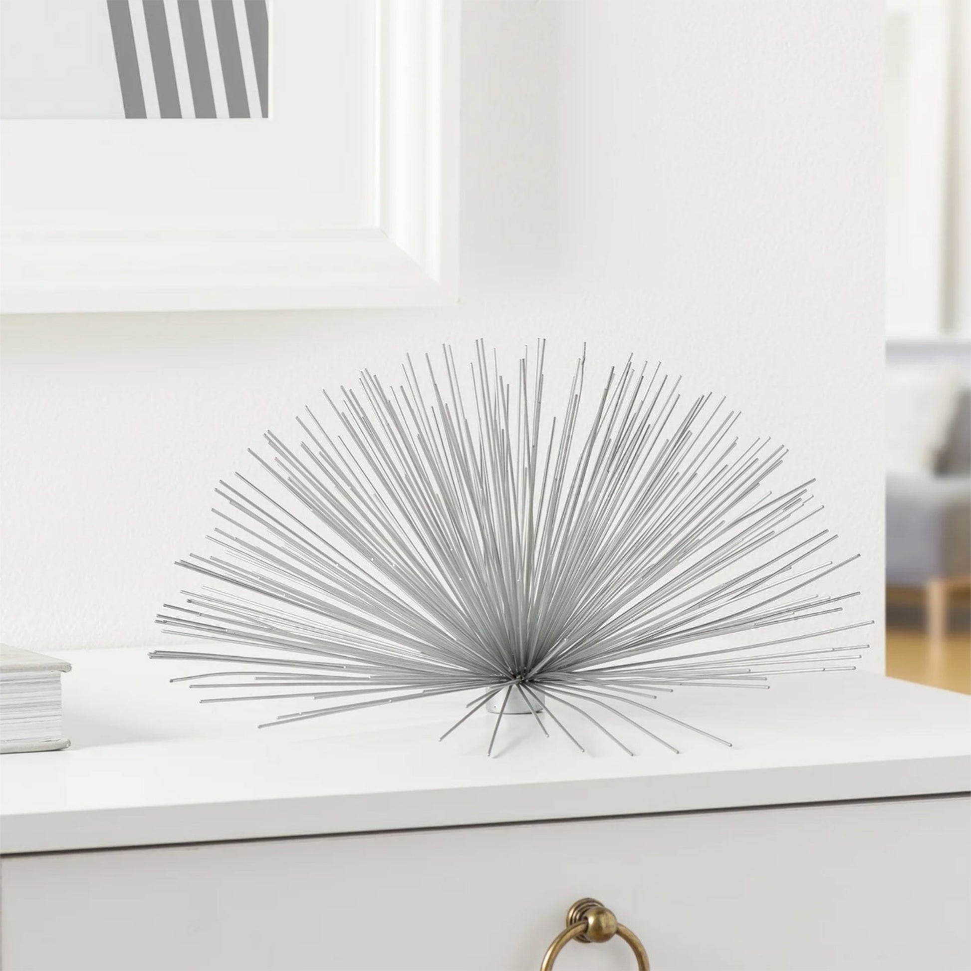 Make a bold statement with this gorgeous 3D spike wall decor. With a luxurious silver powder-coated finish, this will add style and interest to any space. This versatile piece can be easily displayed on a wall or placed on a shelf or table.