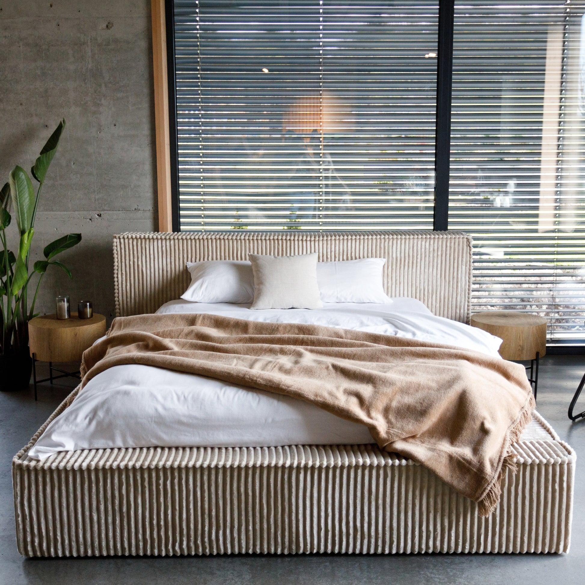 Discover the Scala upholstered bed, a stunning blend of modern style and elegance. Its wide sides are wrapped in luxurious Tilia corduroy fabric, making it the focal point of any bedroom. The flush-to-floor upholstered rails and footboard create a seamless look, while the gas-lift mechanism reveals ample storage space beneath the sturdy steel construction with wooden slats. Inside, you'll find neat white laminated boards, and the mattress rests on 50 high-quality beech slats for exceptional support. The Scala bed is the ultimate combination of style, functionality, and comfort.