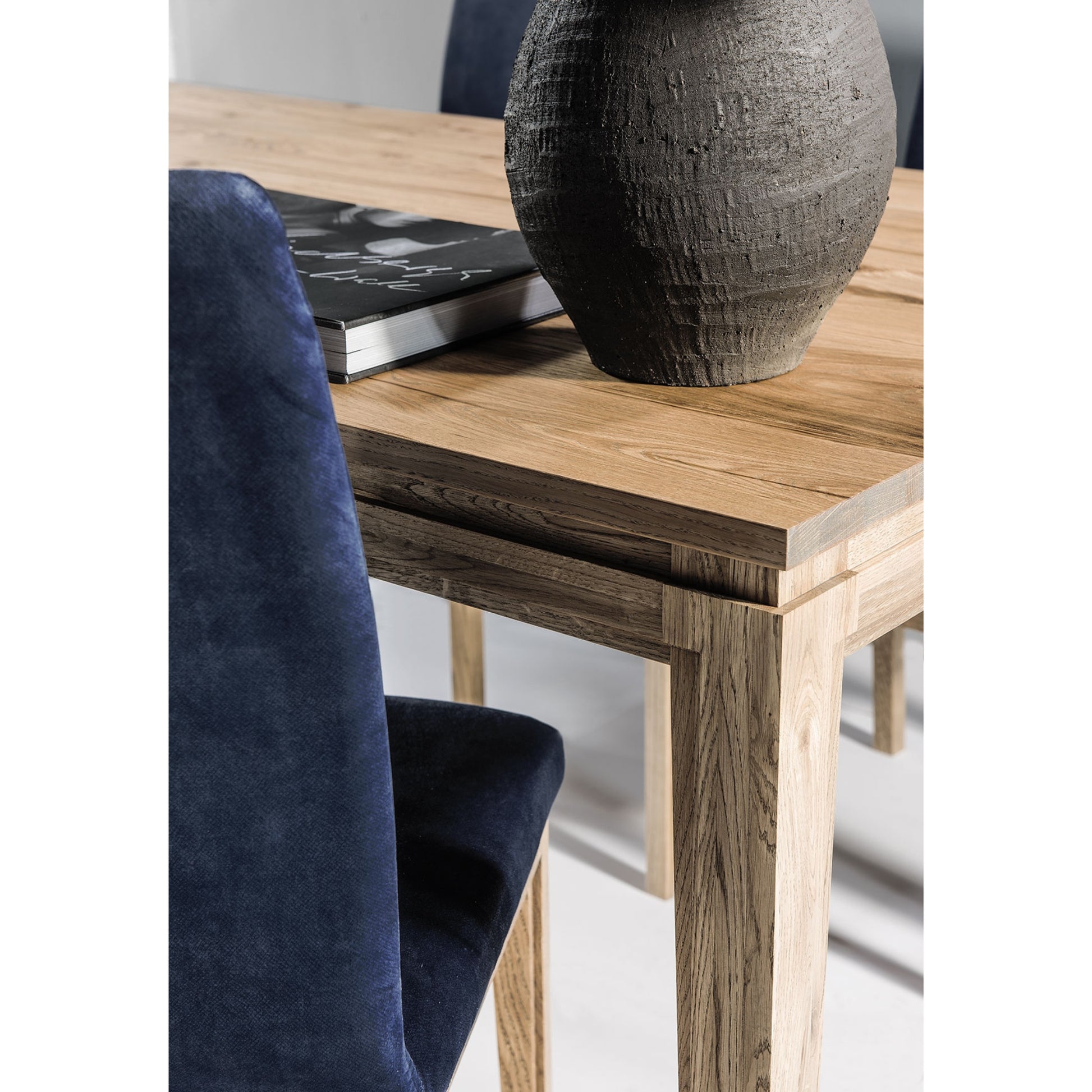 The Granada collection seamlessly combines the classic charm of oak with modern simplicity and lacquered finishes. Waxed oak wood highlights the material's natural beauty, while oak veneers from aged logs create unique grain patterns on tabletops and panels. Distinctive wood milling contrasts beautifully with desert grey lacquered elements. Thoughtfully designed for both style and function, Granada is perfect for creating a warm, inviting space in living and dining areas.