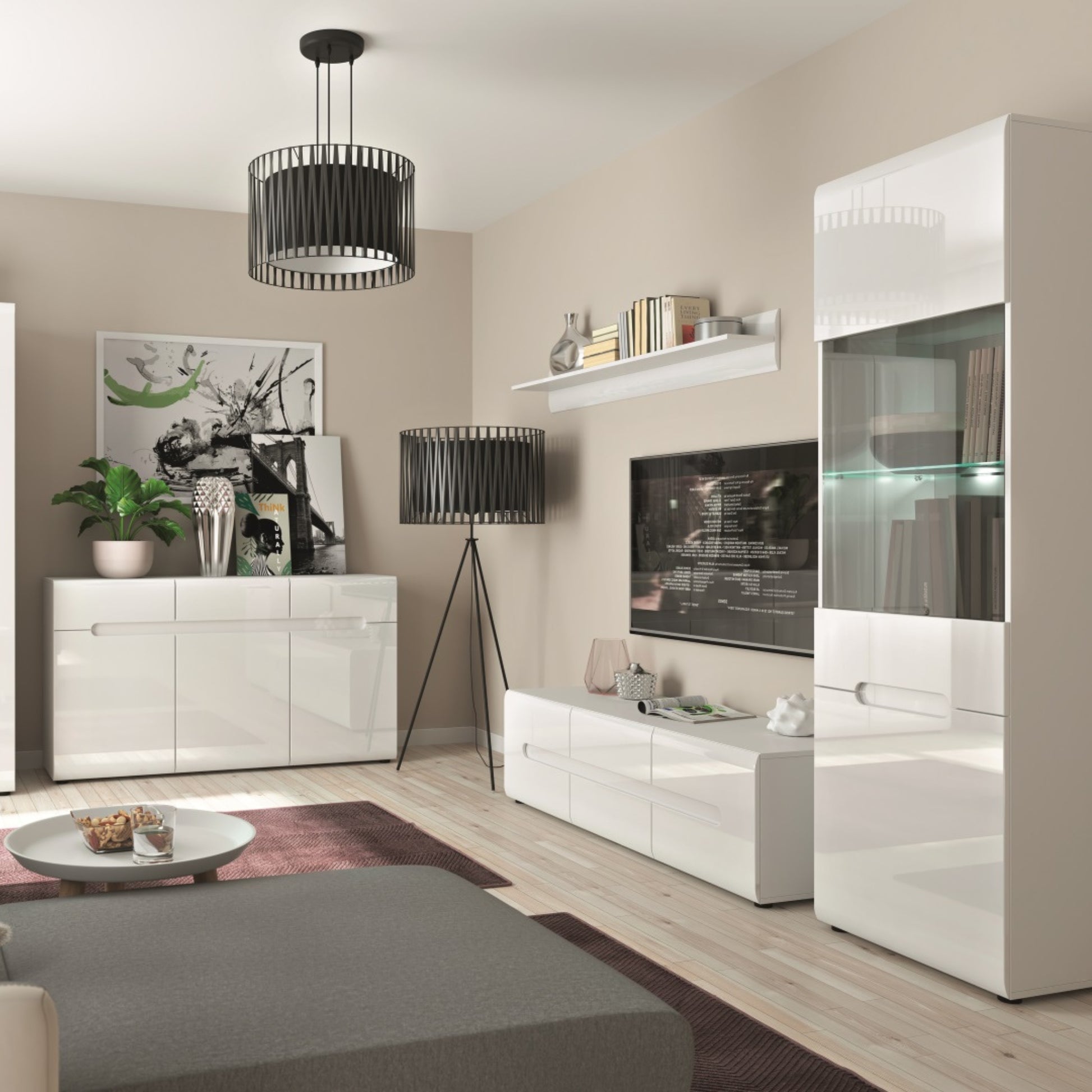 Azteca Trio may be your choice if you seek simple elegance yet stand-out pieces for your living space. This collection follows the latest trends. Its white colour will brighten any room and stay stylish throughout time. High gloss white fronts reflect its modern look. The soft closing system will make Azteca Trio pieces a pure pleasure for everyday use.