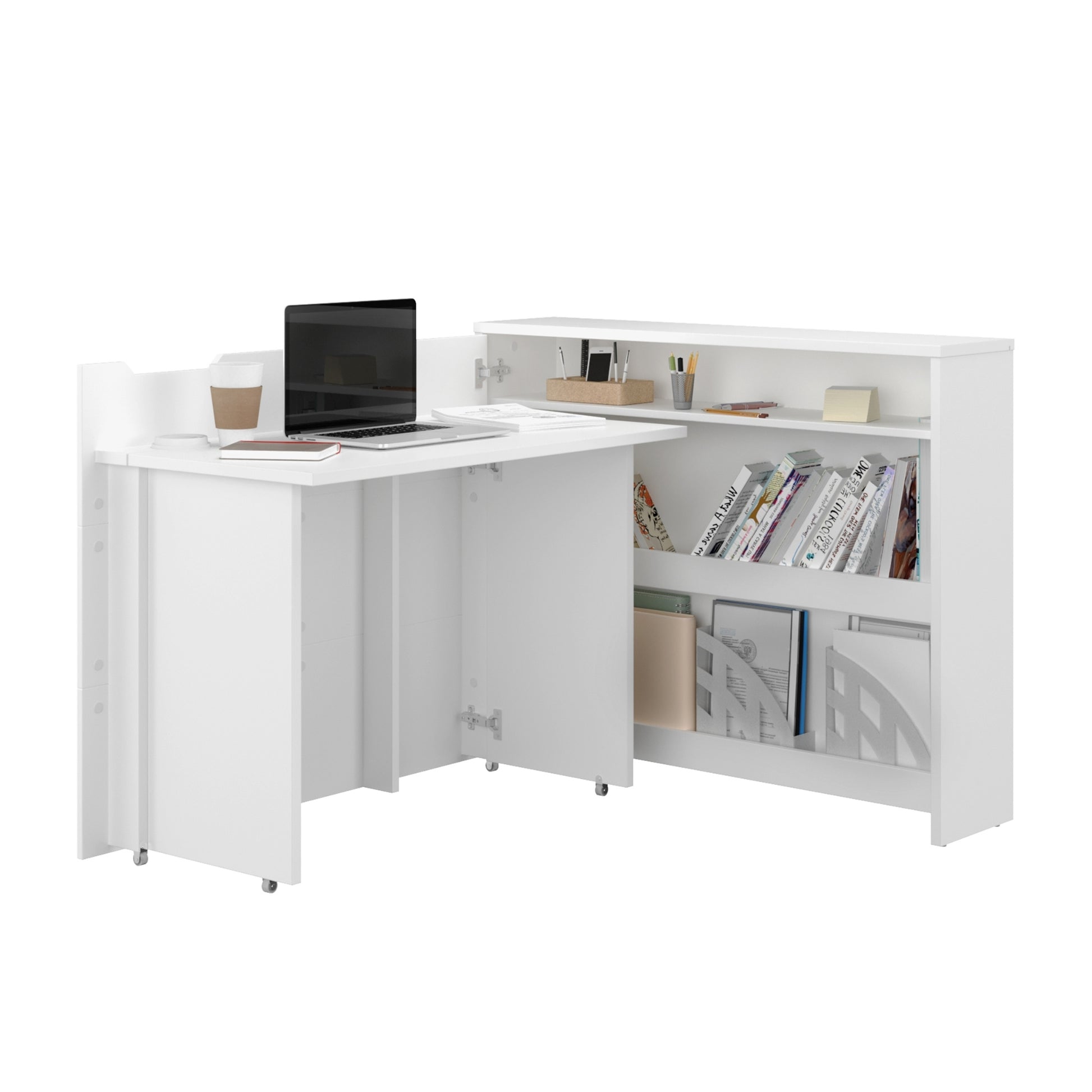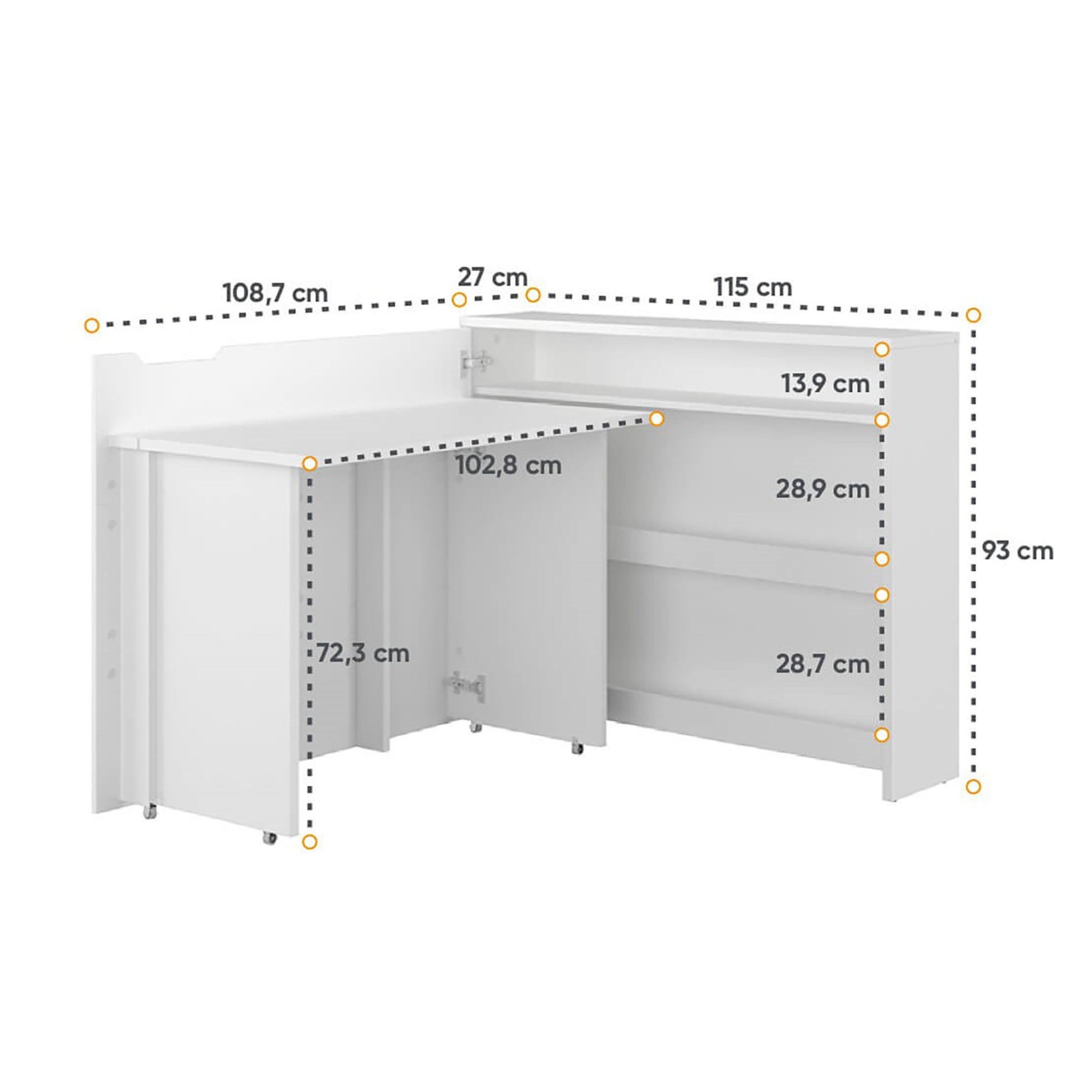 This practical, foldable desk allows you to manage the space conveniently. It will work in a kid's and teenager's room, home office, studio apartment, or guest room. Small wheels installed under the side walls help easily and quickly open and close it. When folded, the desk looks like an ordinary cabinet. The minimalist design allows for an easy arrangement with other furniture.
